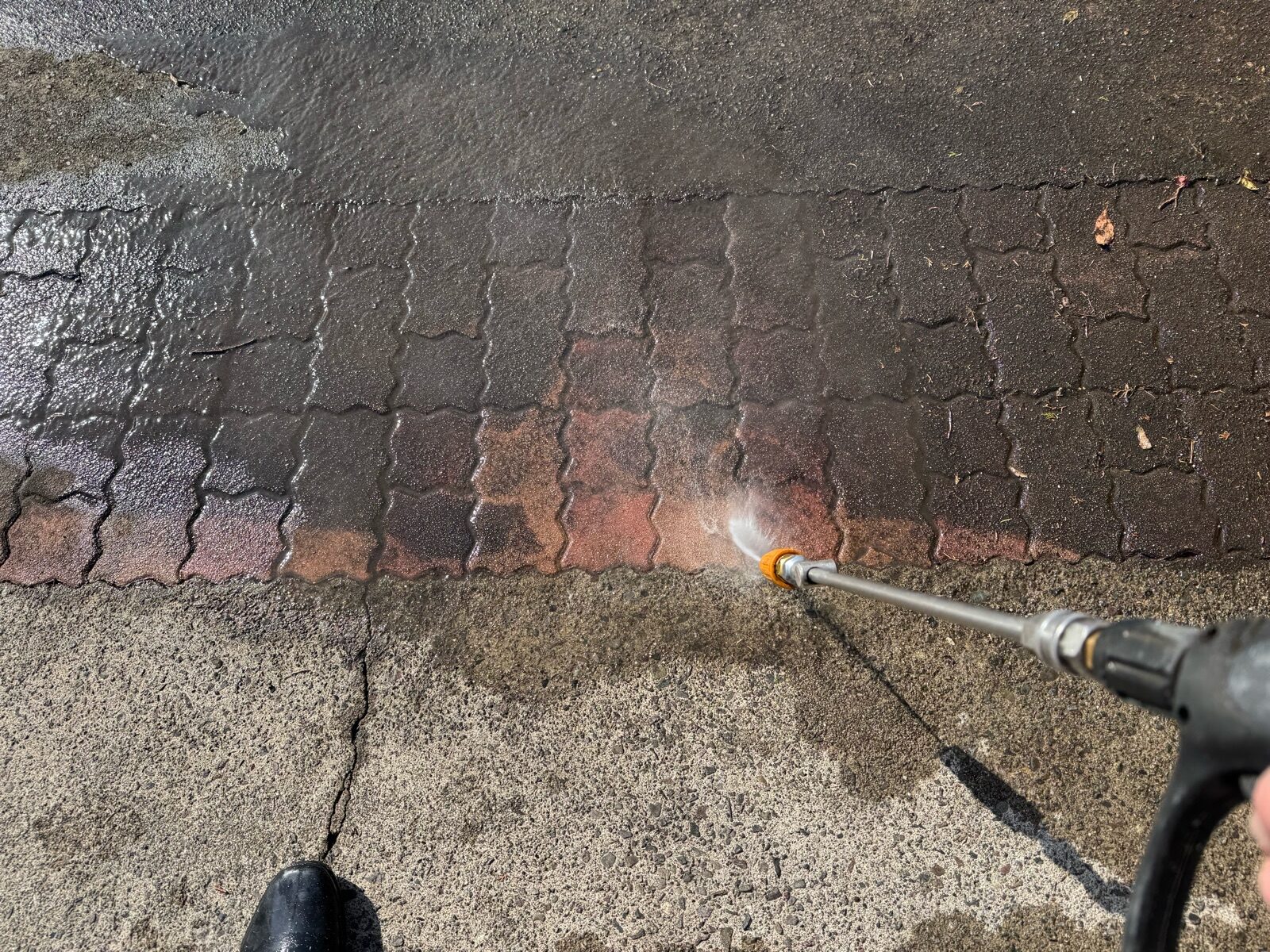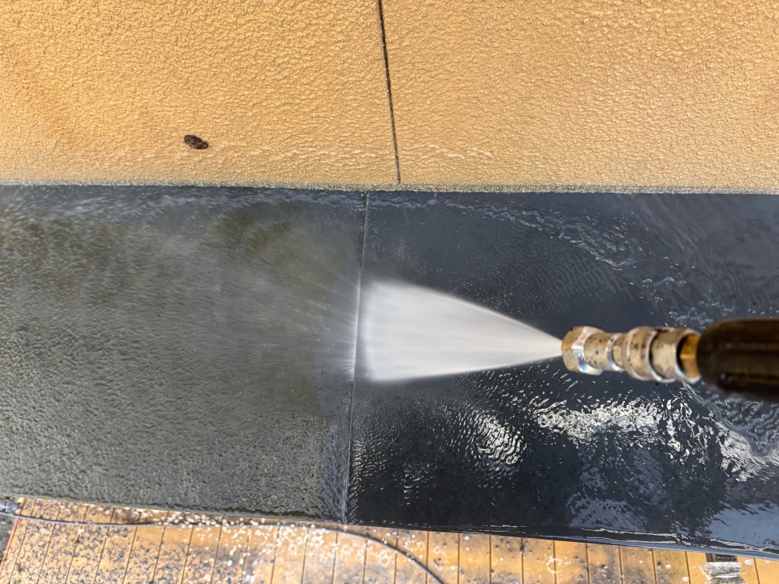玄関アプローチ、駐車場土間 高圧洗浄の様子です