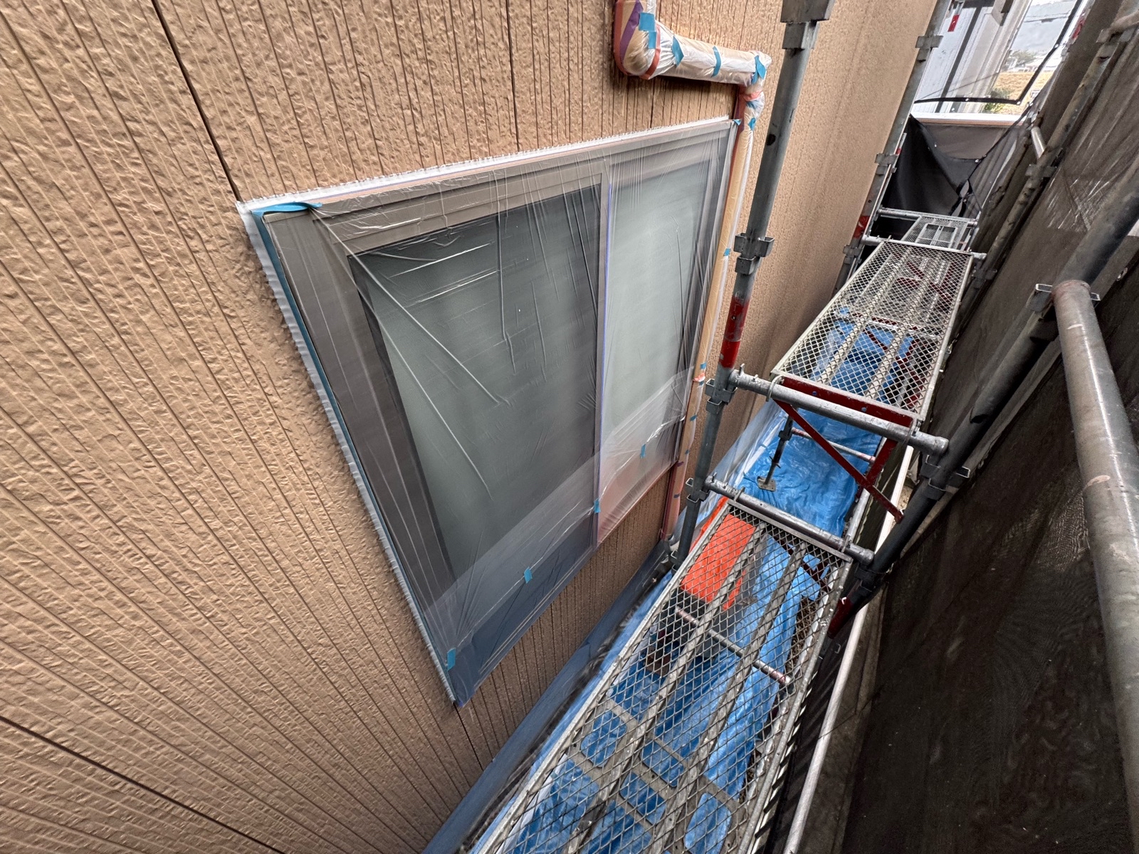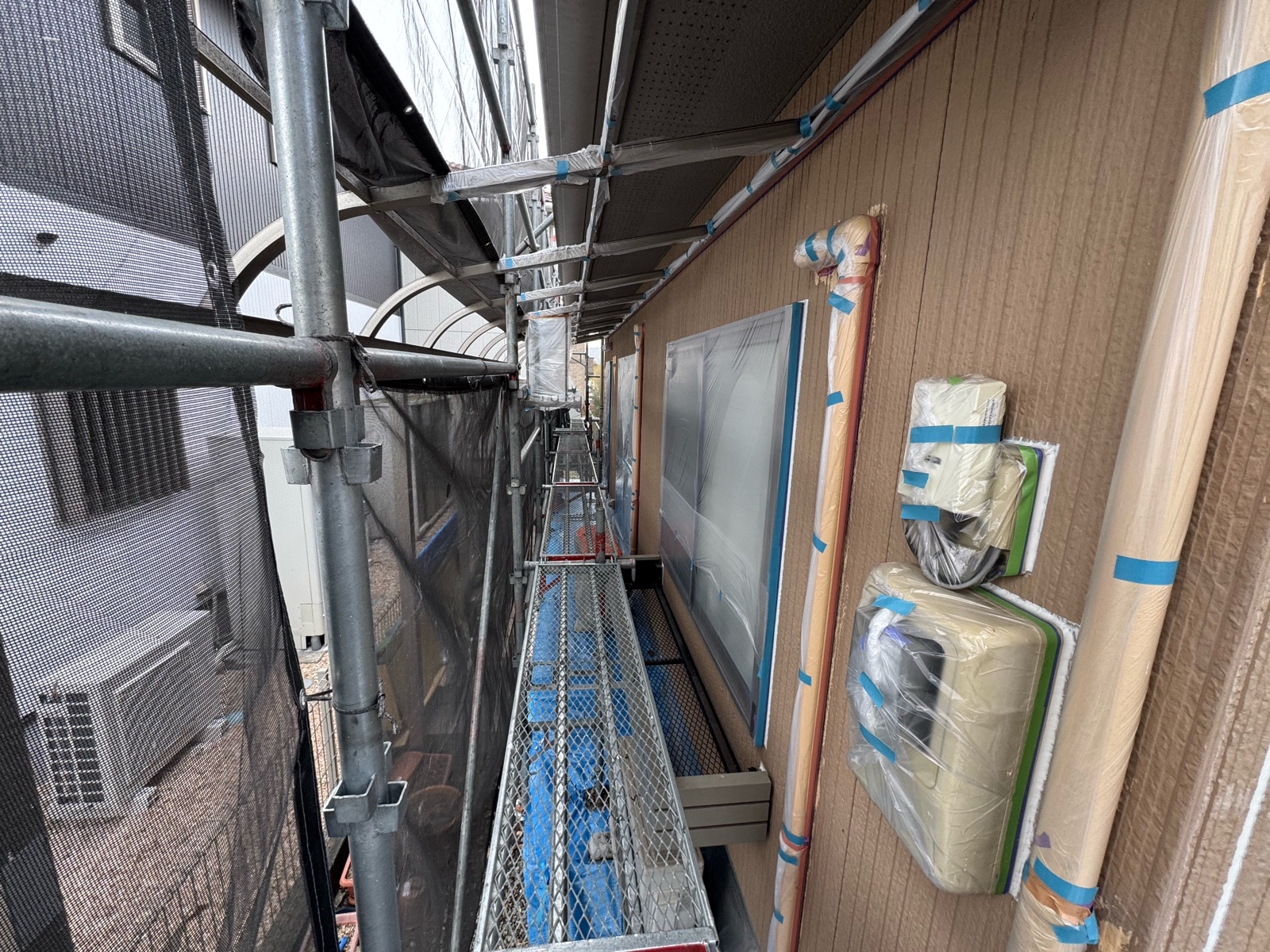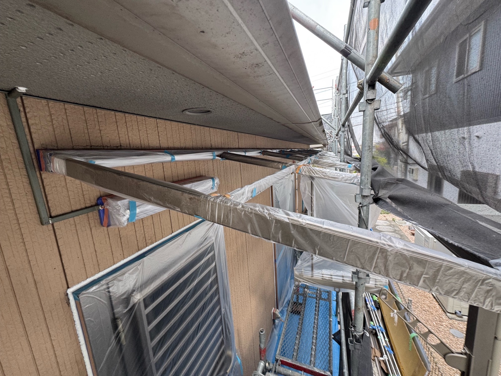 大分市N様邸 ビニール養生作業/外壁下塗り