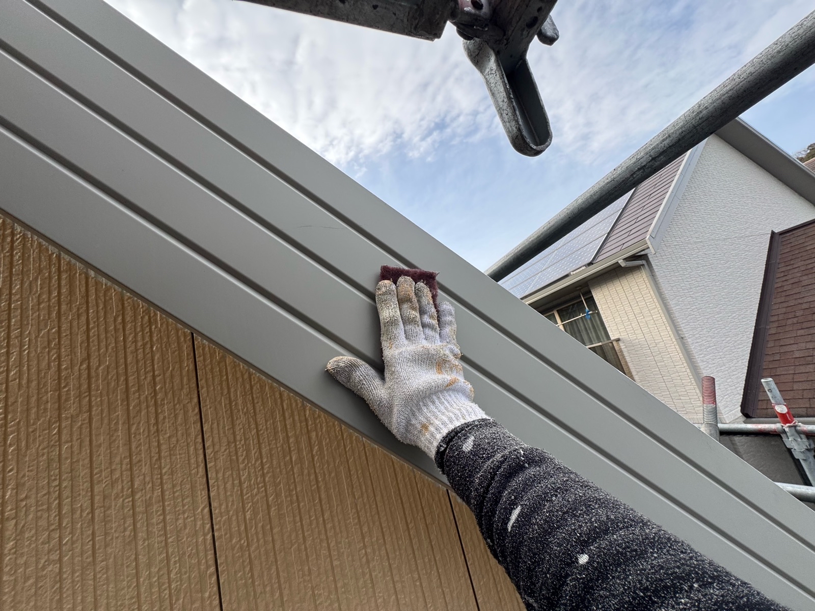 水切り板金塗装、シャッターBOX塗装 1回目の様子です