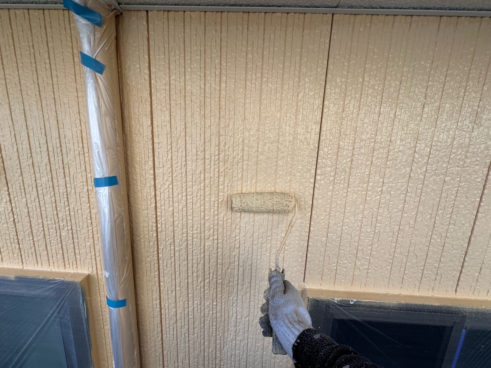 外壁塗装作業 上塗り2回目の様子です