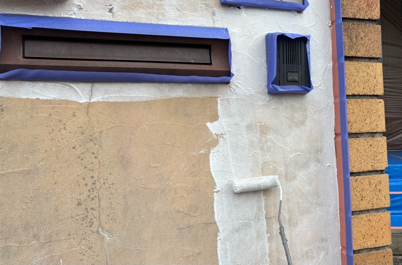 外塀塗装 下塗りの様子です