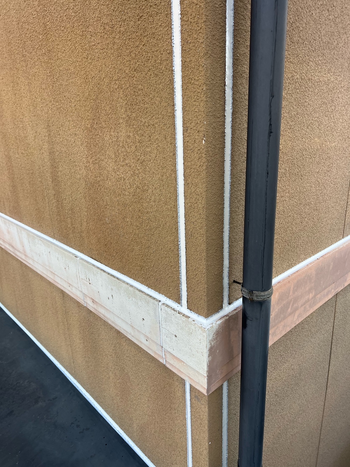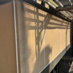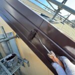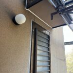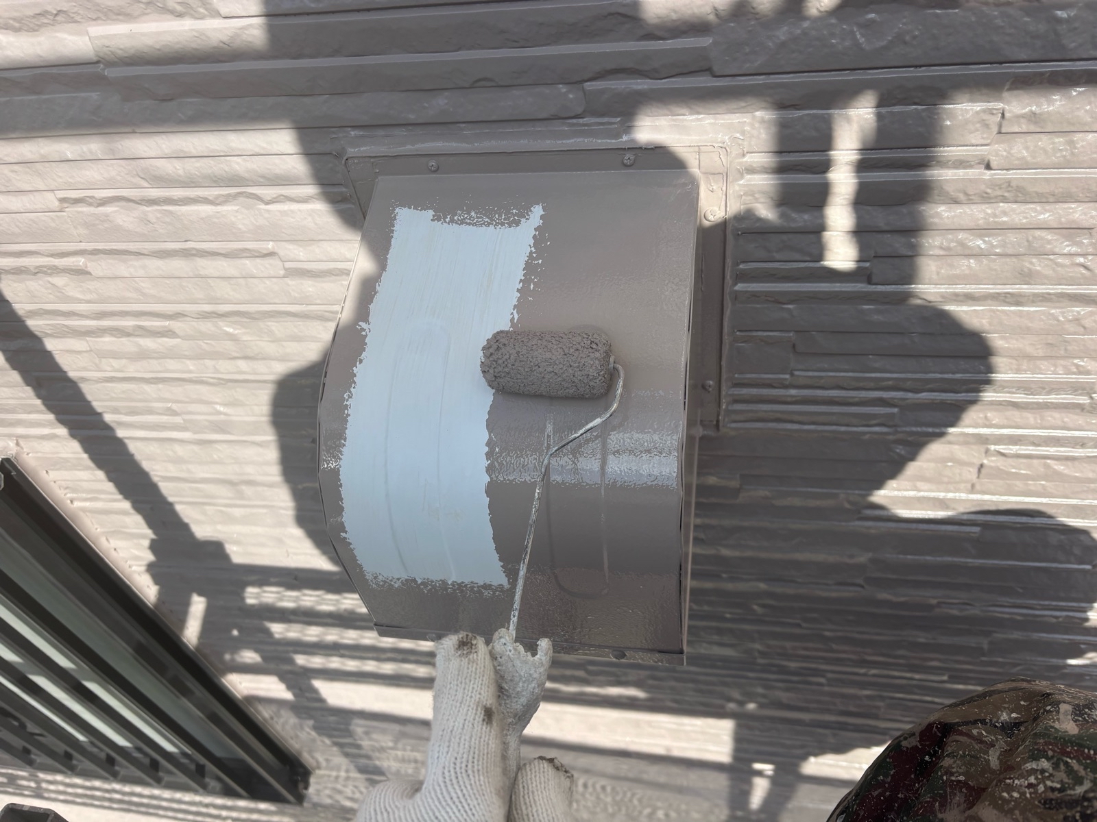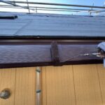 室外機カバー塗装、水切り板金塗装 1回目の様子です