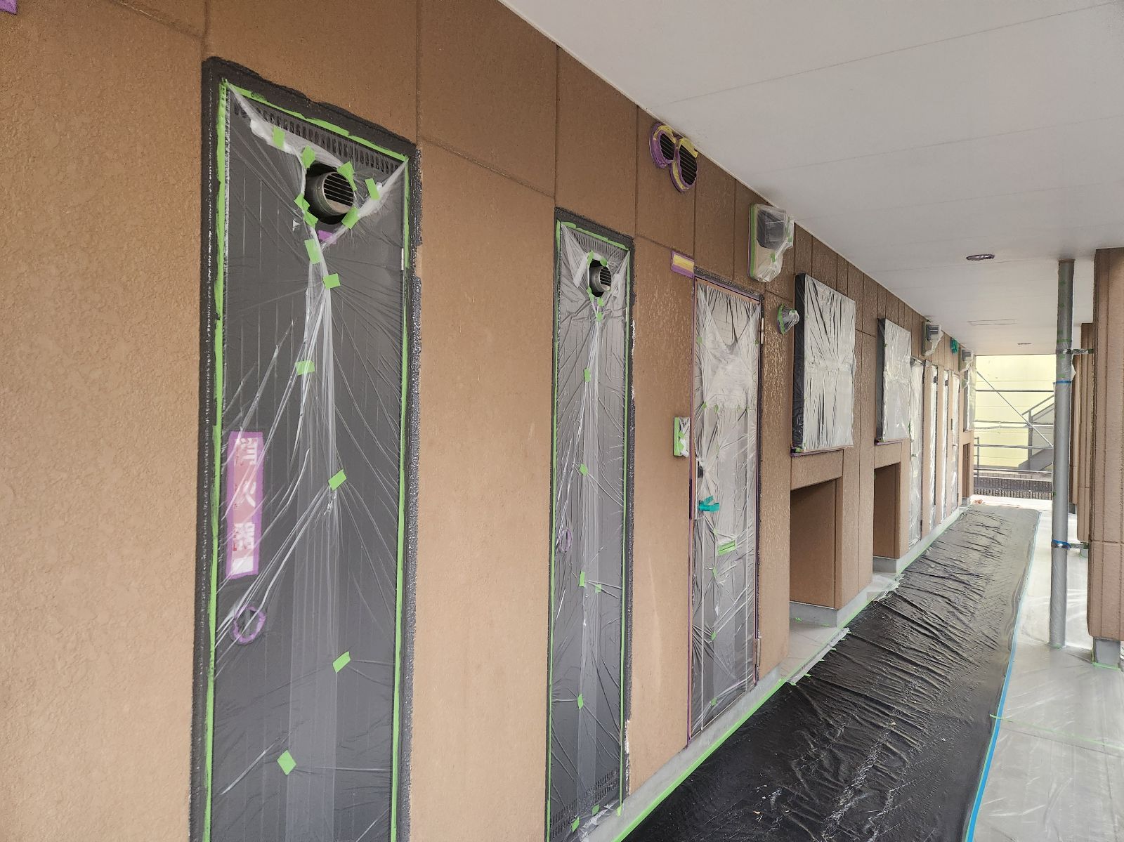 中津市Sアパート様 クラック処理/養生作業