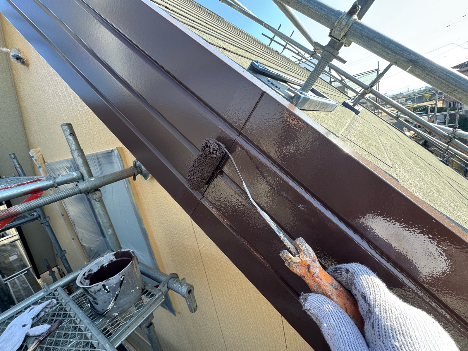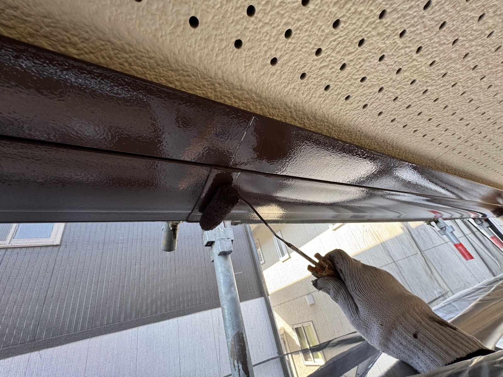 鼻隠し・破風板塗装 2回目の様子です