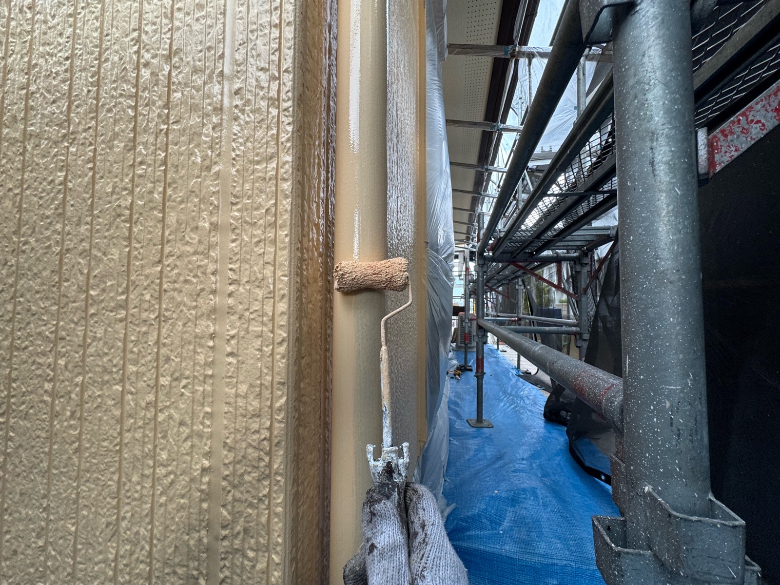 外塀塗装 上塗り2回目の様子です