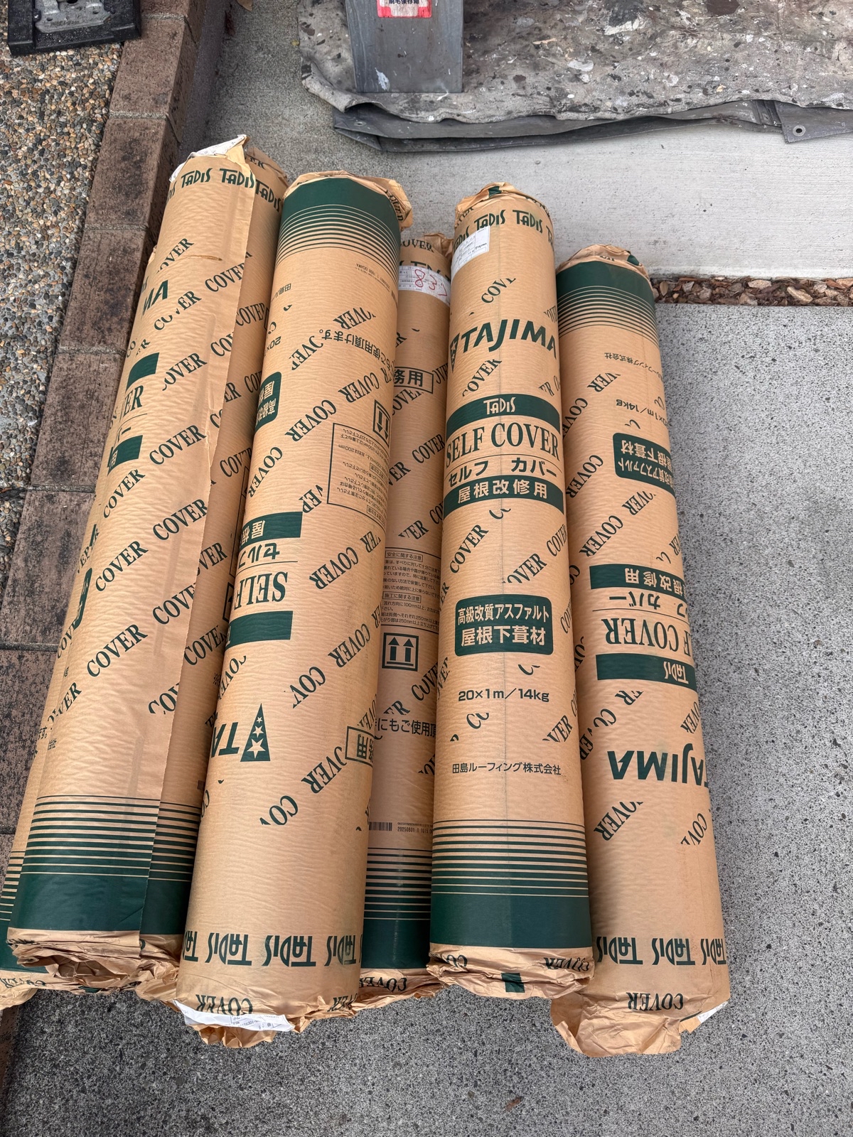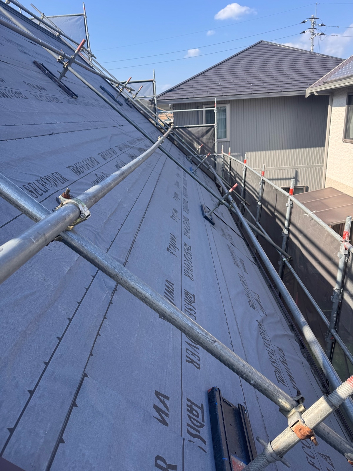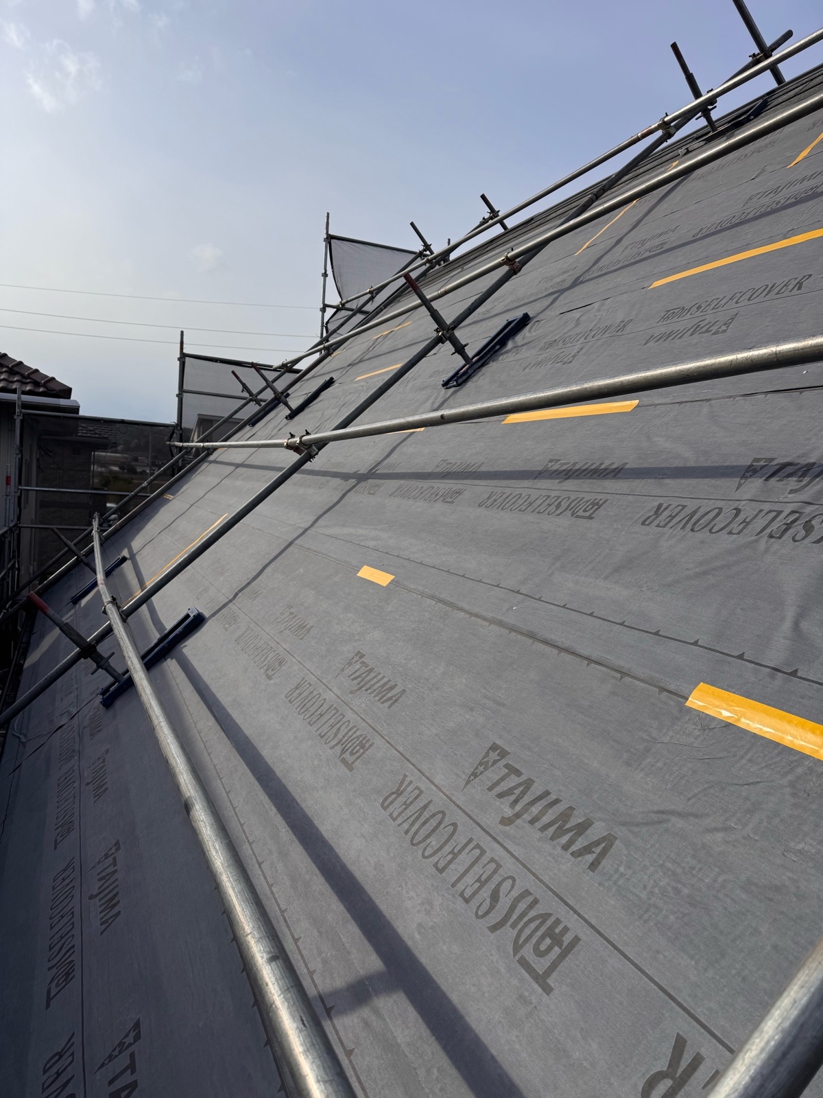 粘着ルーフィング施工の様子です