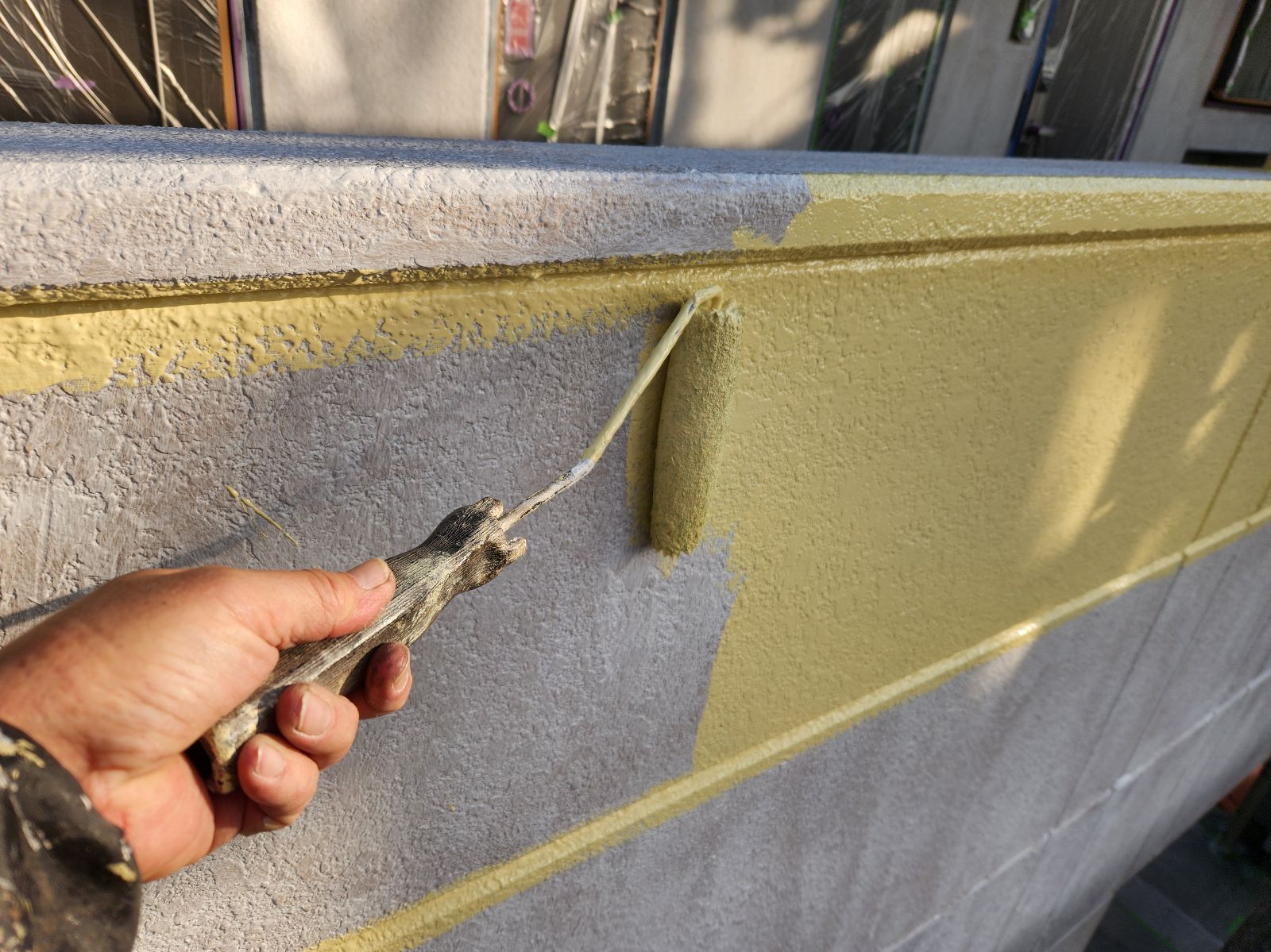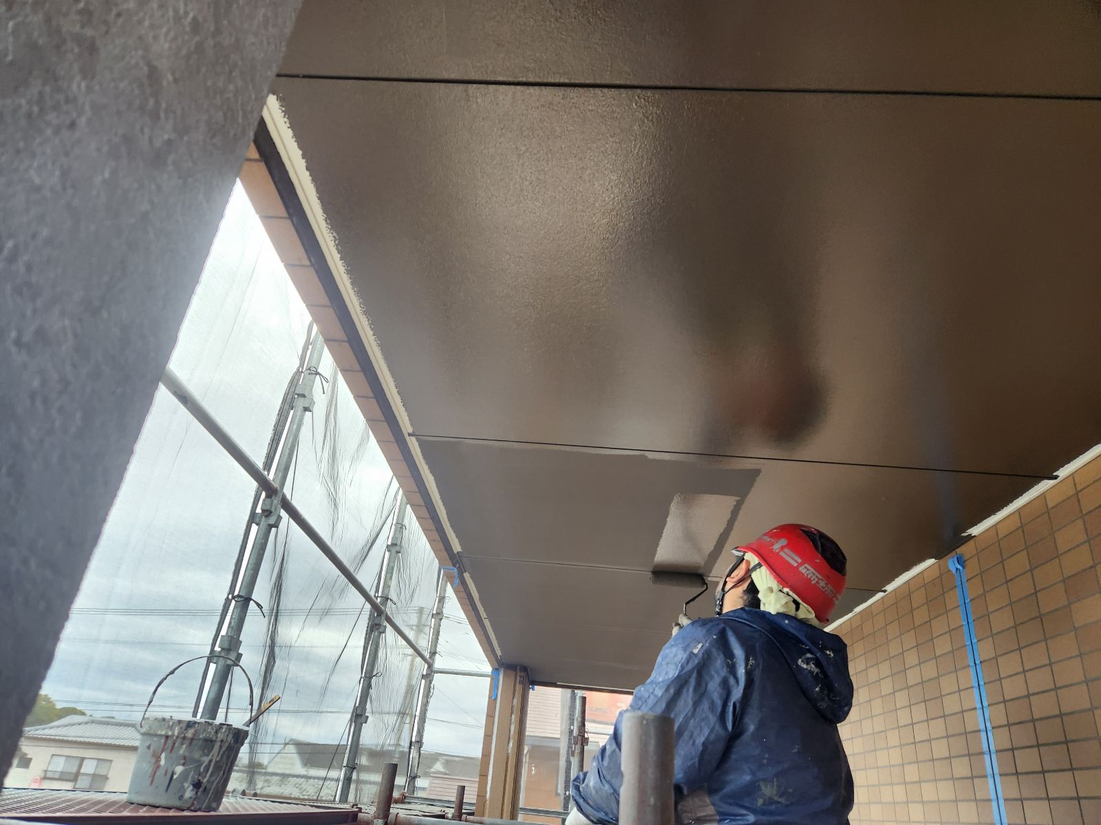 水切り板金塗装、付帯部塗装 1回目の様子です