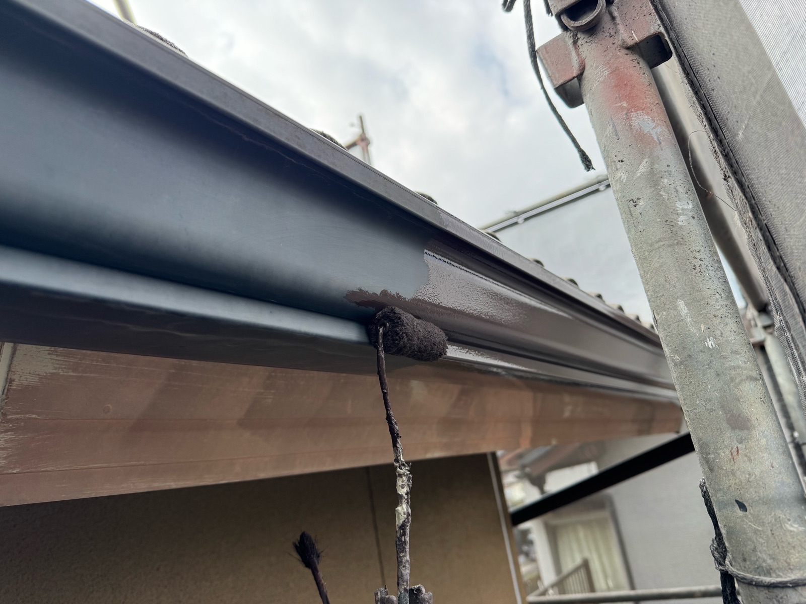 雨樋塗装、鼻隠し・破風板塗装 1回目の様子です