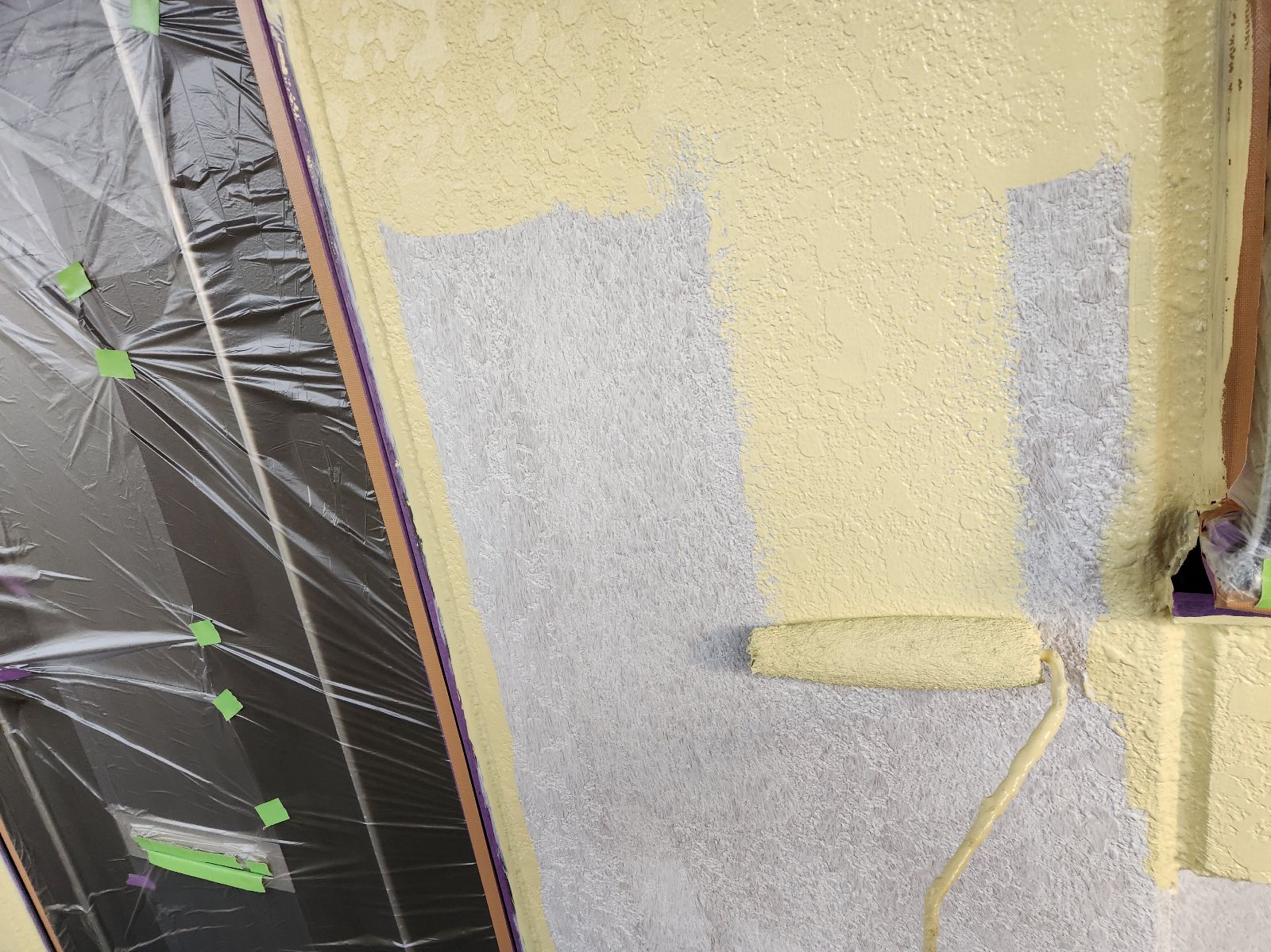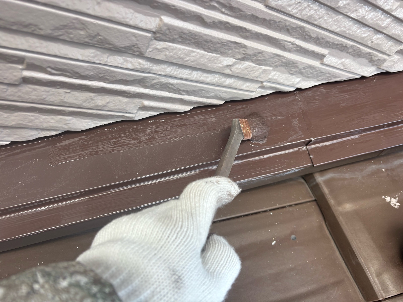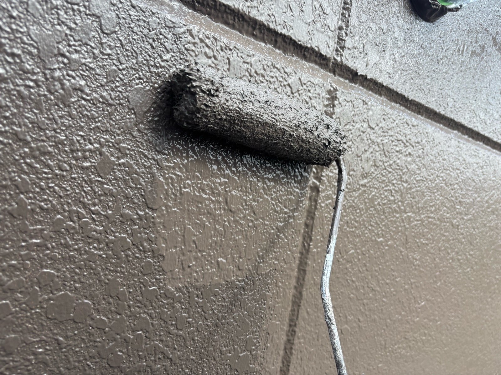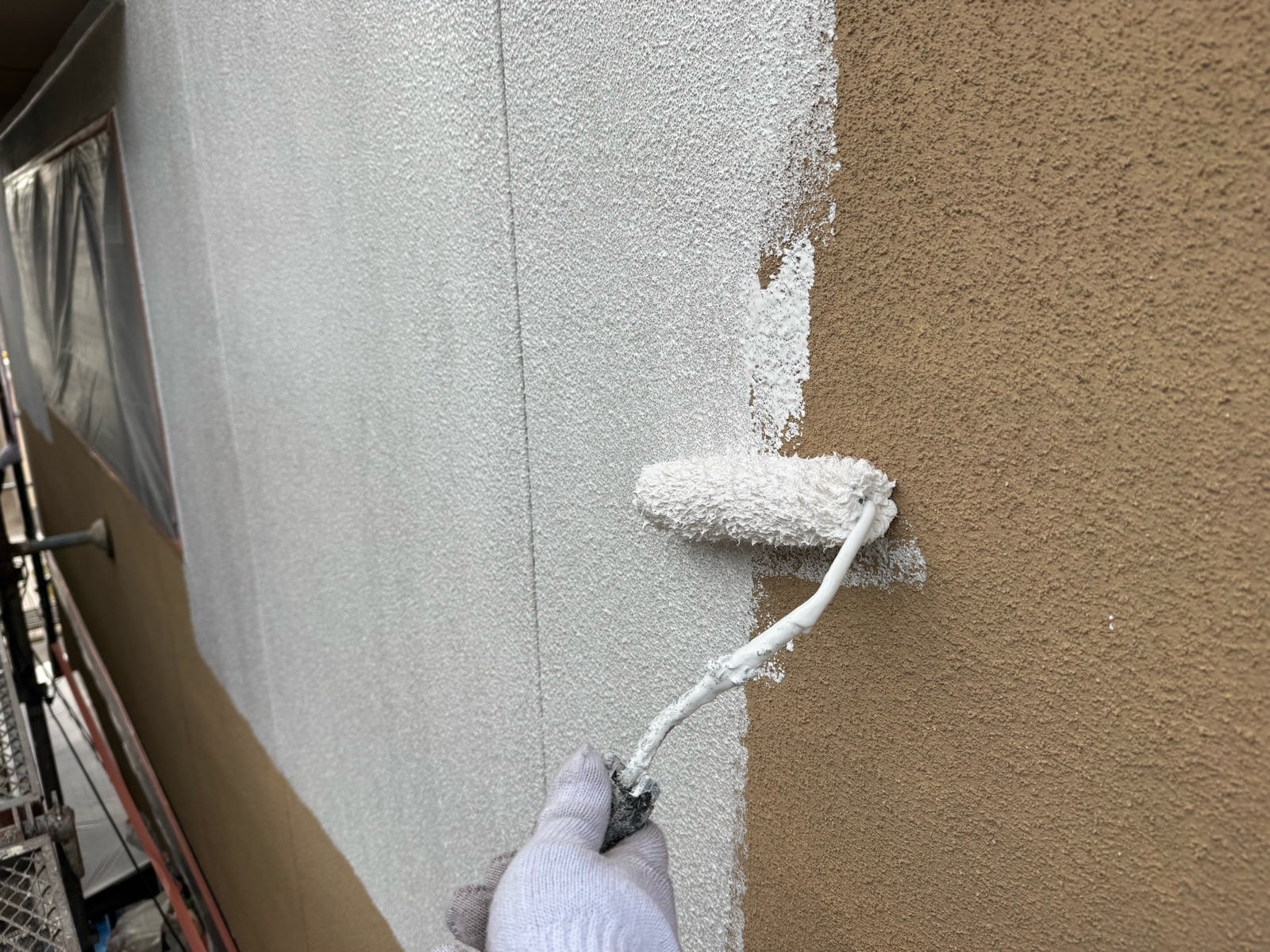 外壁塗装作業 上塗り1回目の様子です