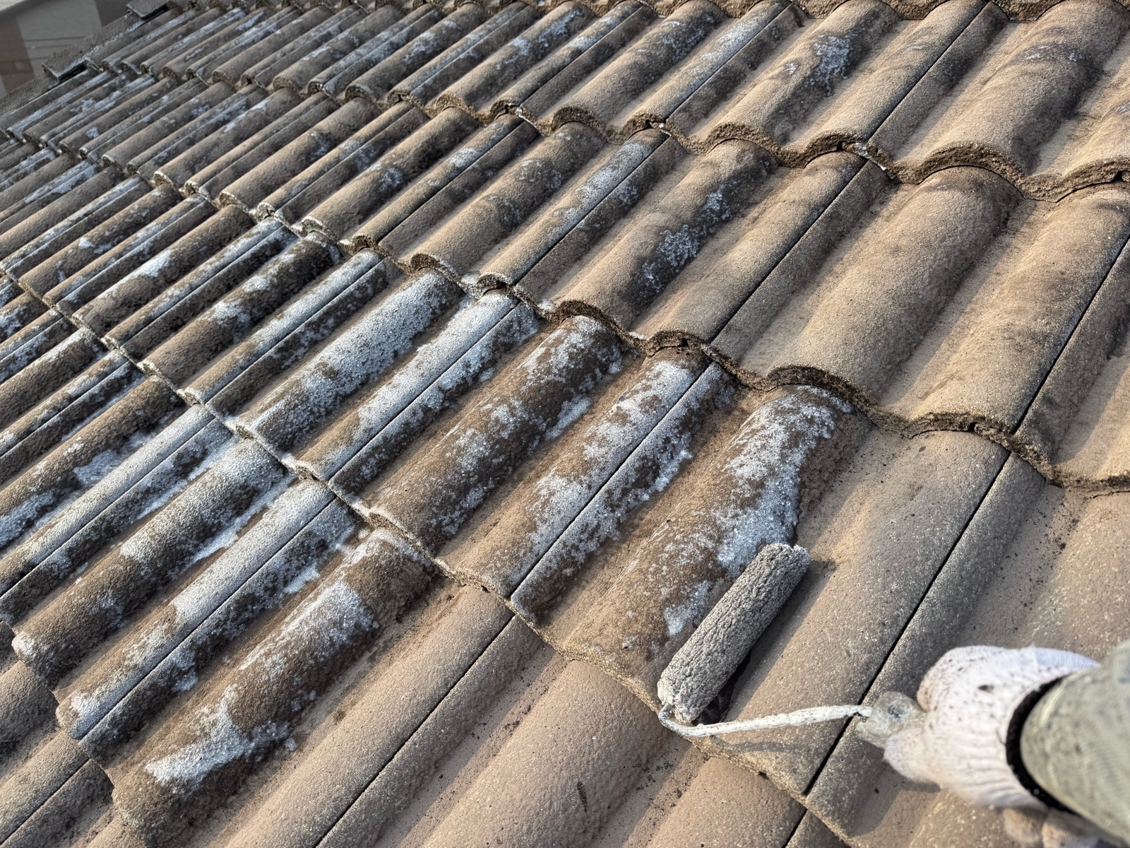 屋根塗装作業 下塗りの様子です
