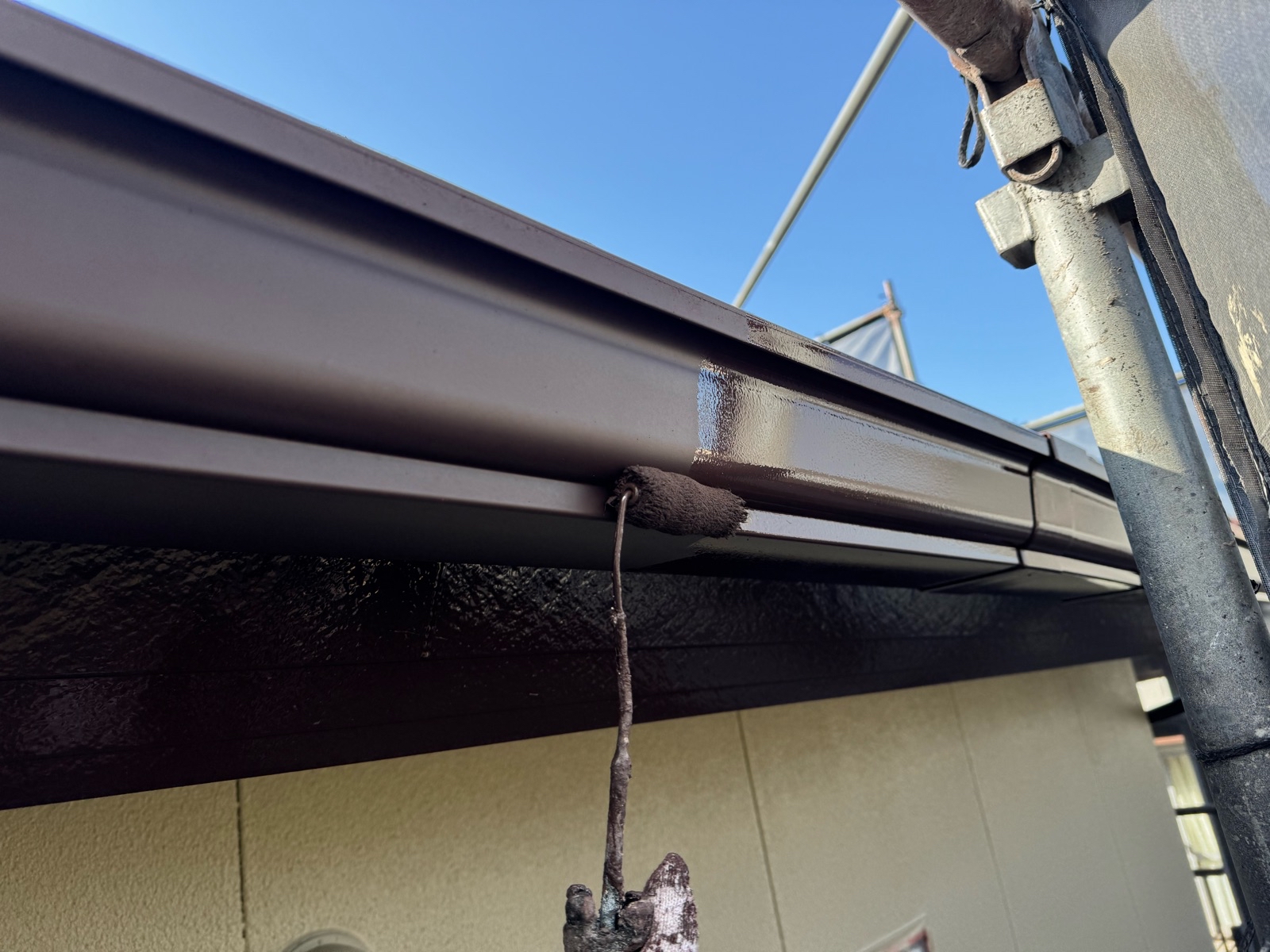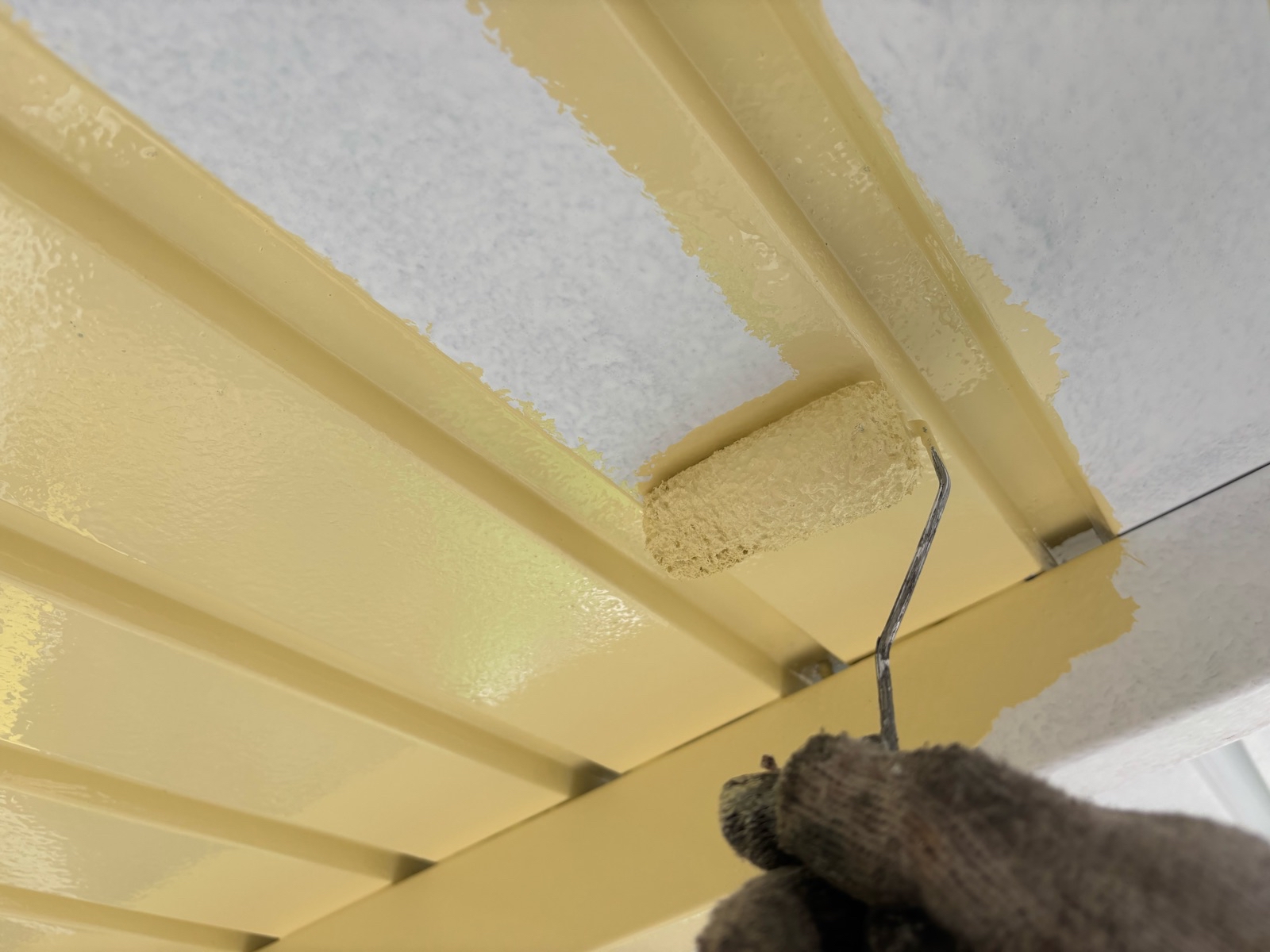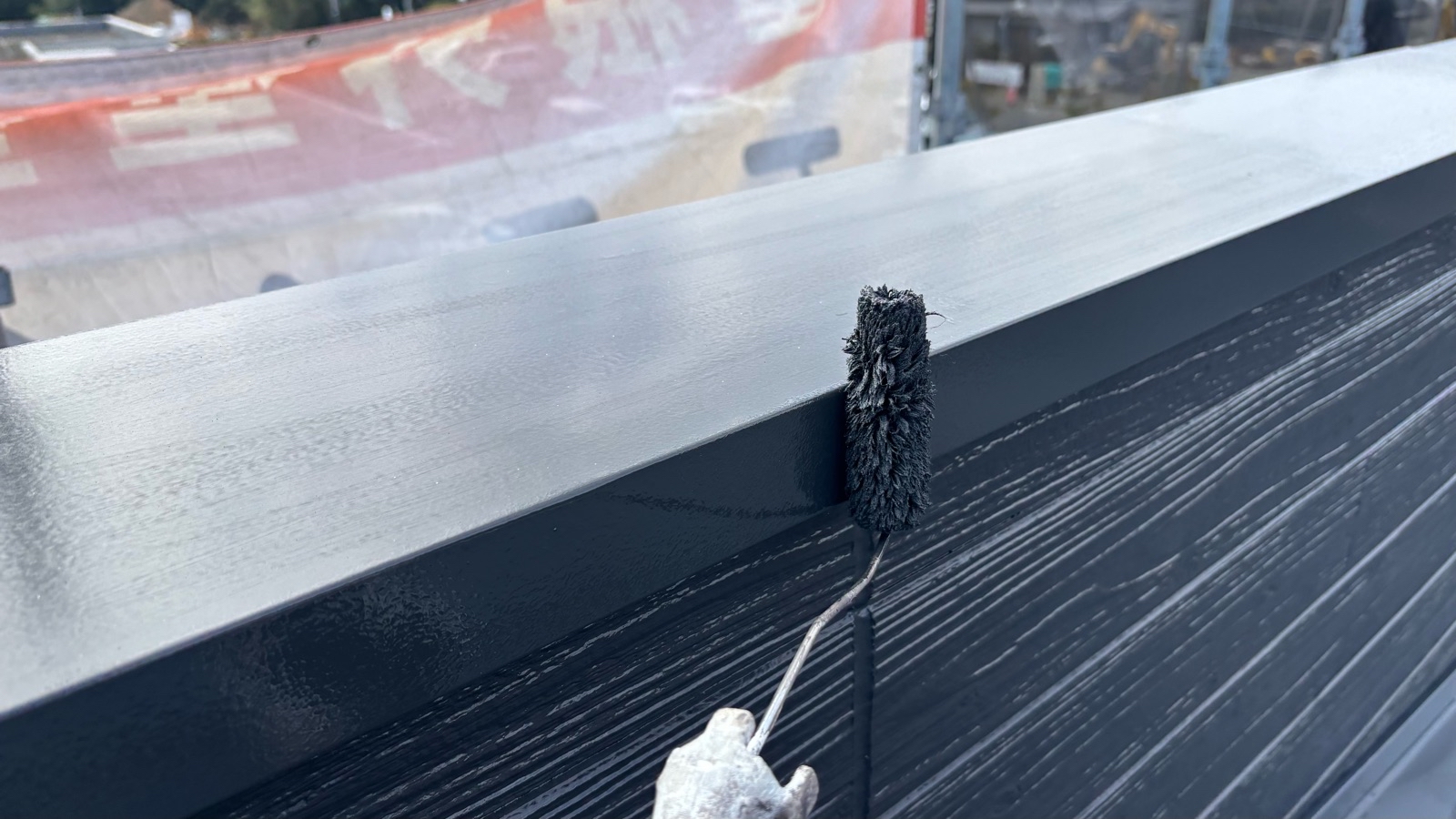 外壁塗装作業 上塗り2回目の様子です(ベランダ面)