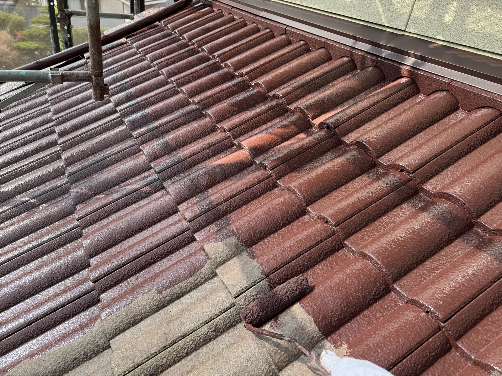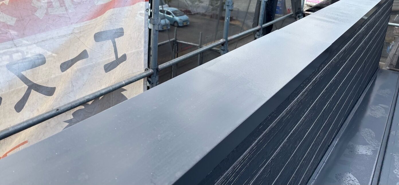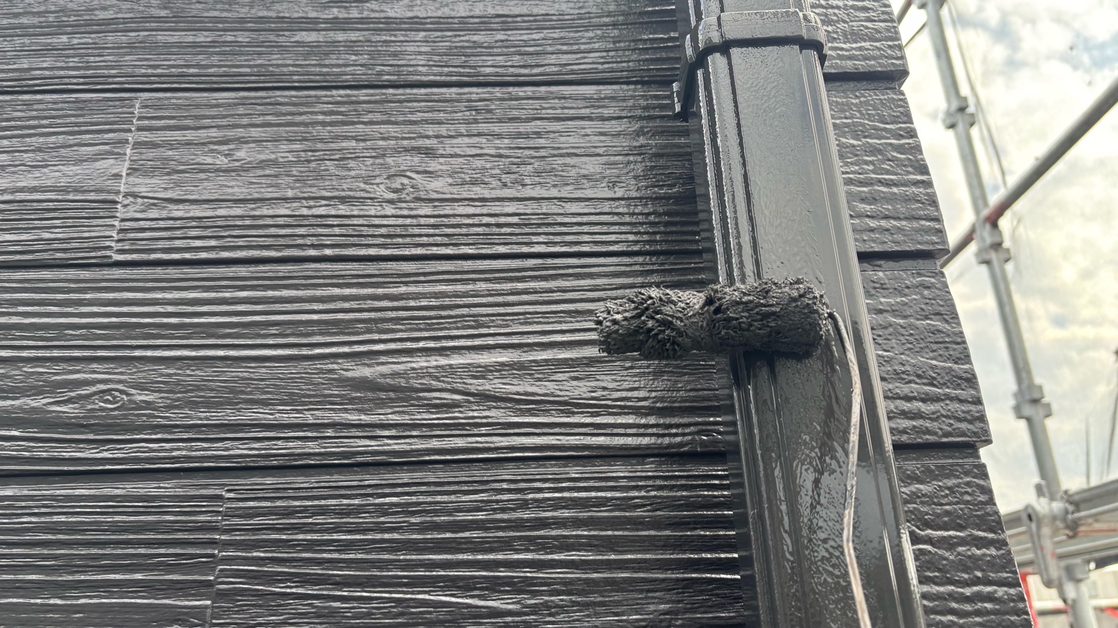 外壁塗装作業 上塗り2回目の様子です(ベランダ面)