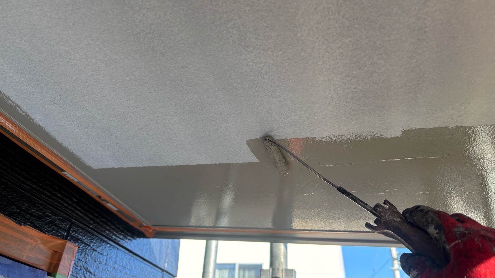 屋根塗装作業 上塗り2回目の様子です