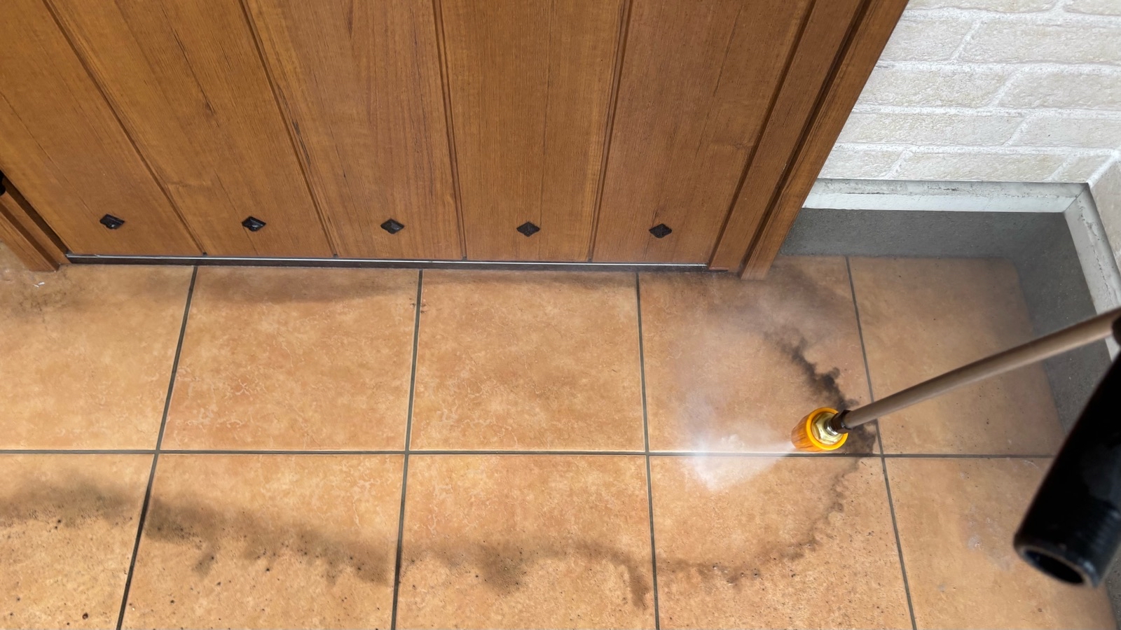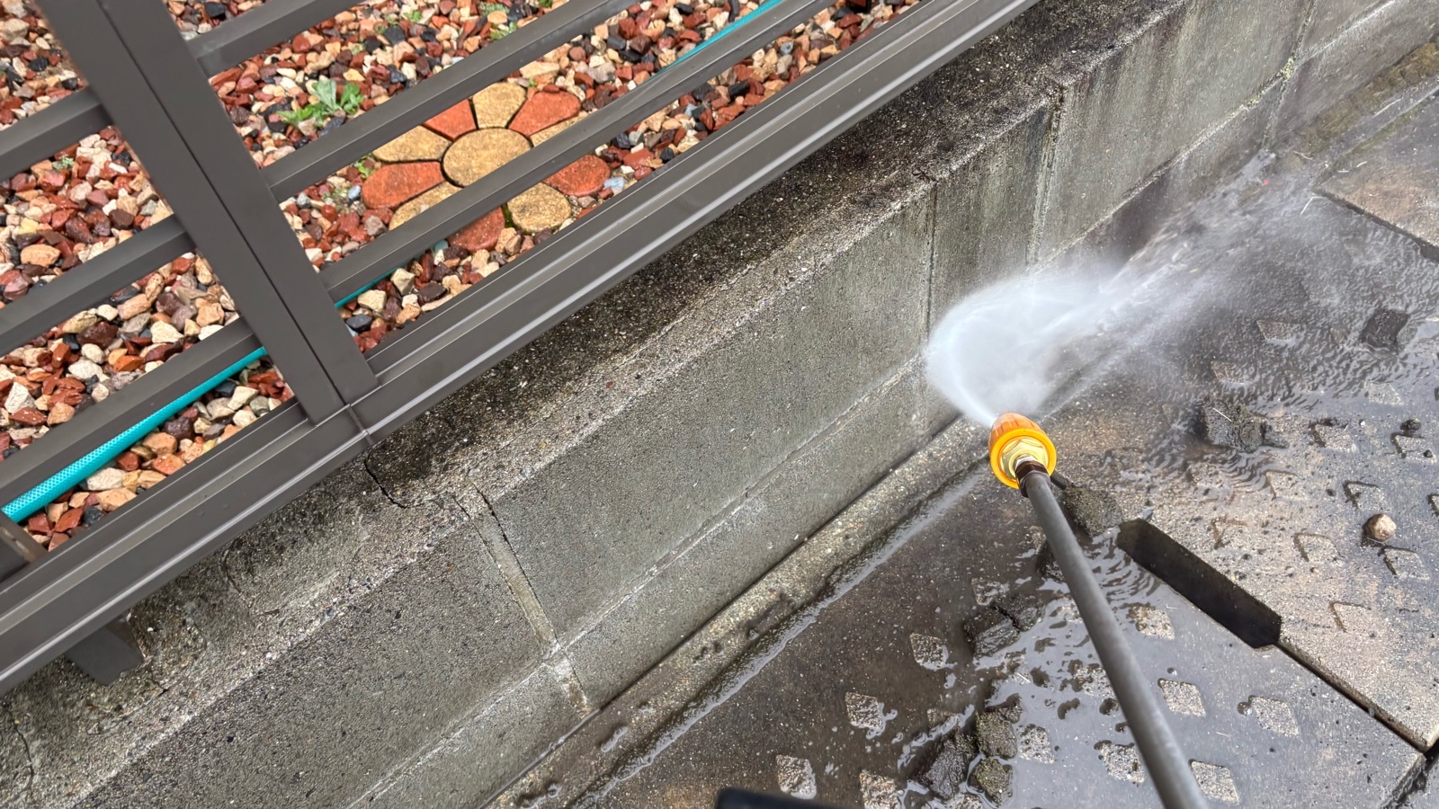 玄関アプローチ、外塀 高圧洗浄の様子です