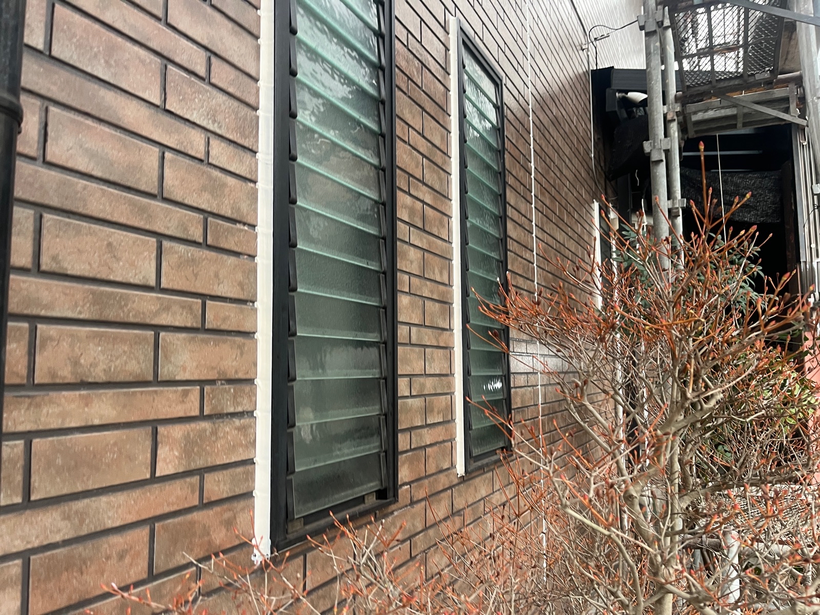 今日は、あいにくのお天気です…足場解体、高圧洗浄作業など、天気が悪くても出来る作業を行っていますので、ご覧ください☺