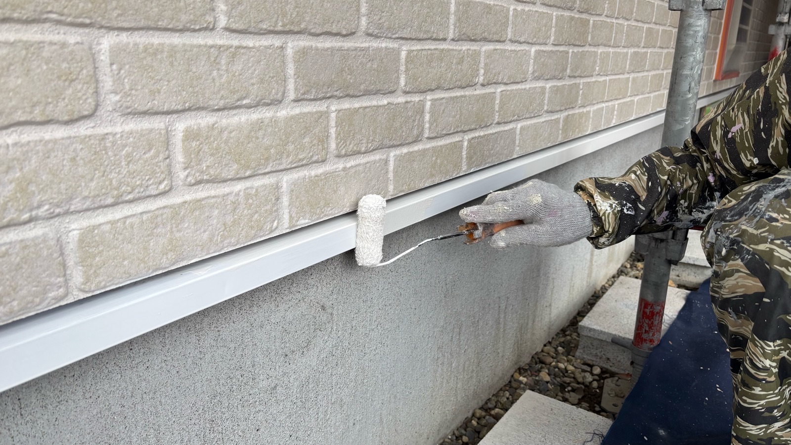 外壁塗装作業 上塗り1回目の様子です