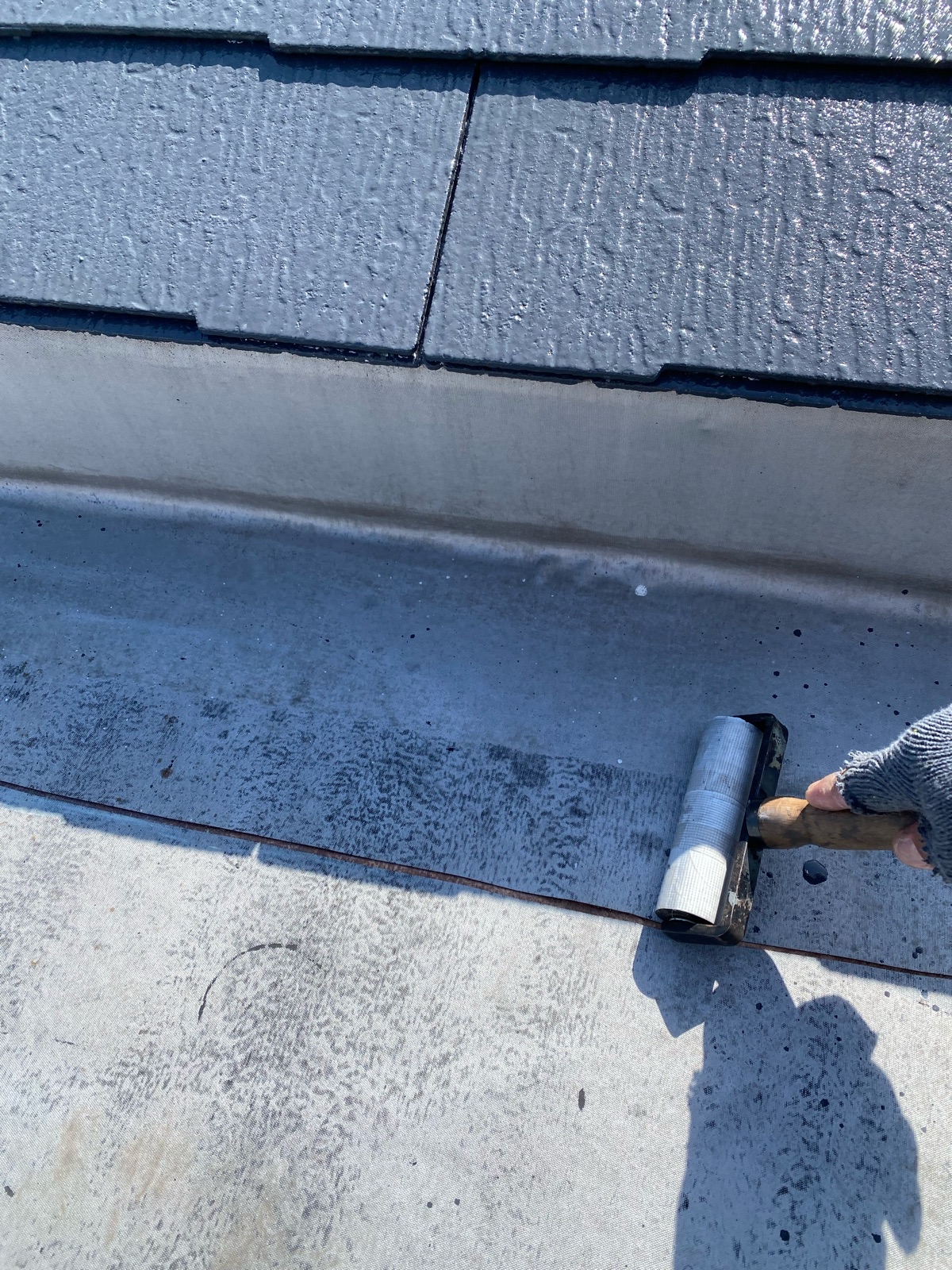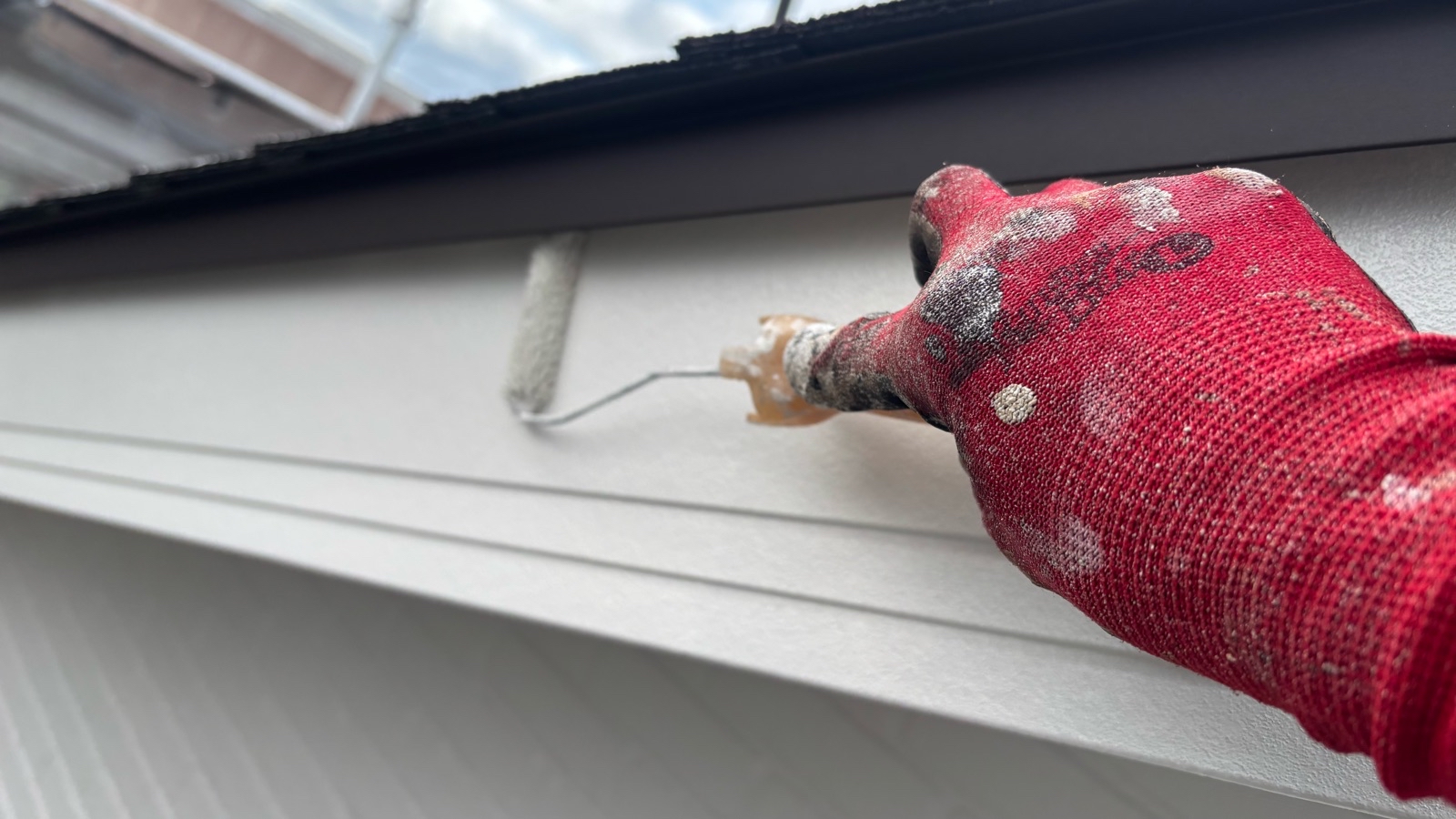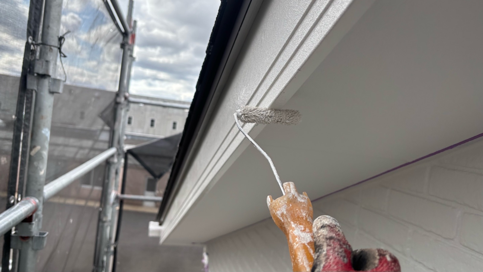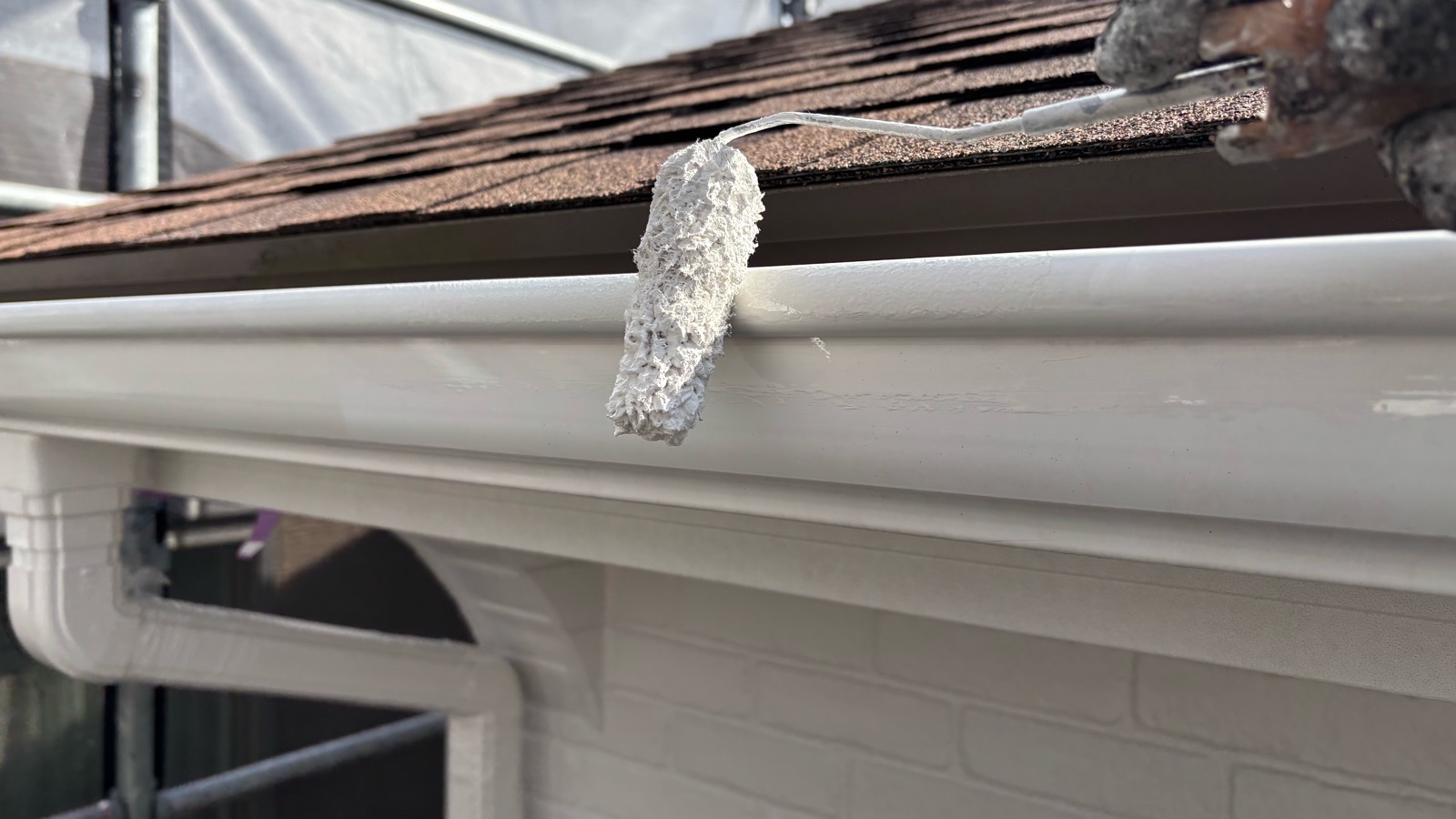 雨樋塗装、鼻隠し・破風板塗装 1回目の様子です(3/3施工)
