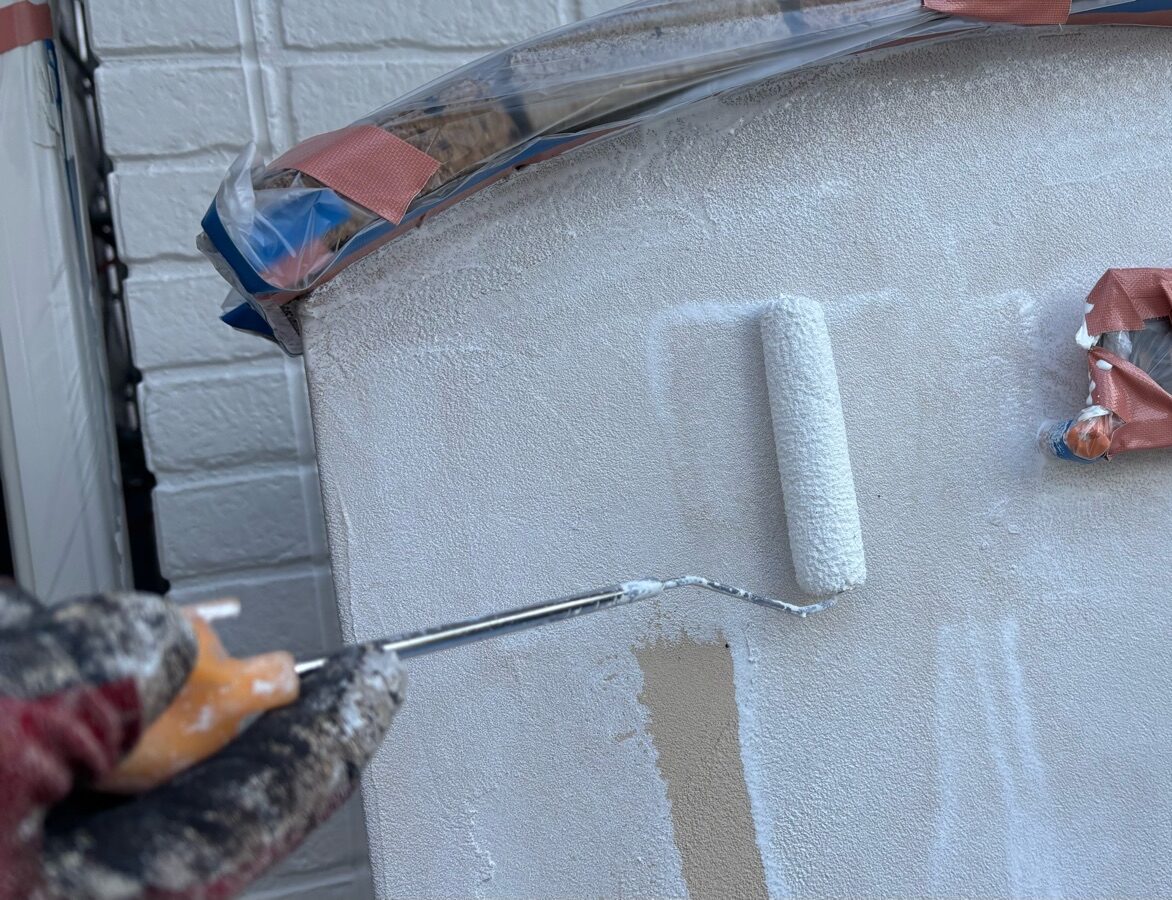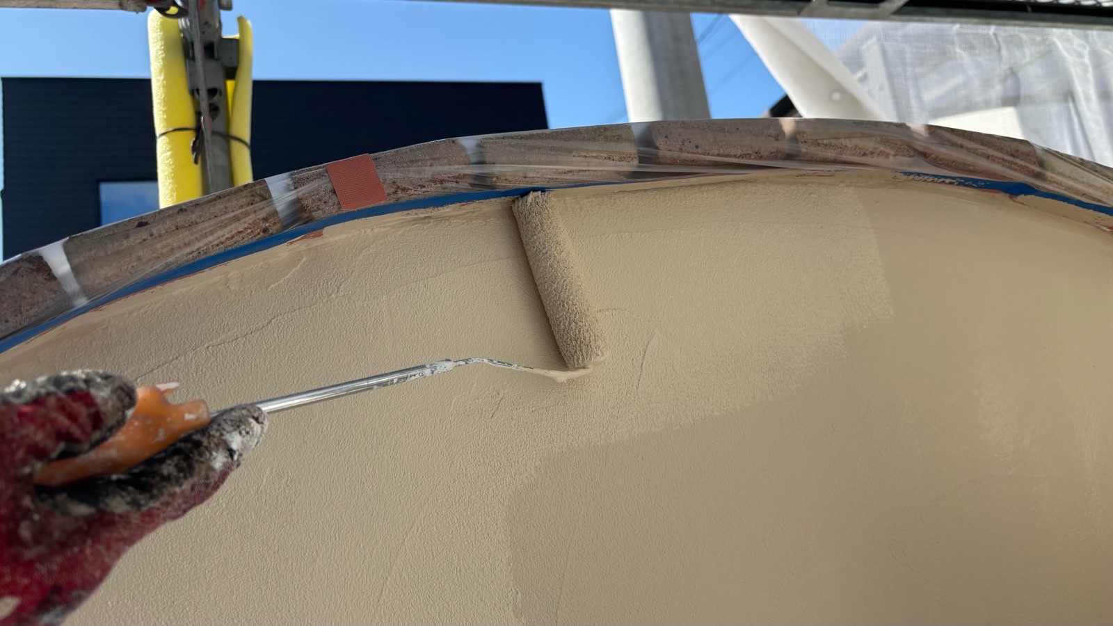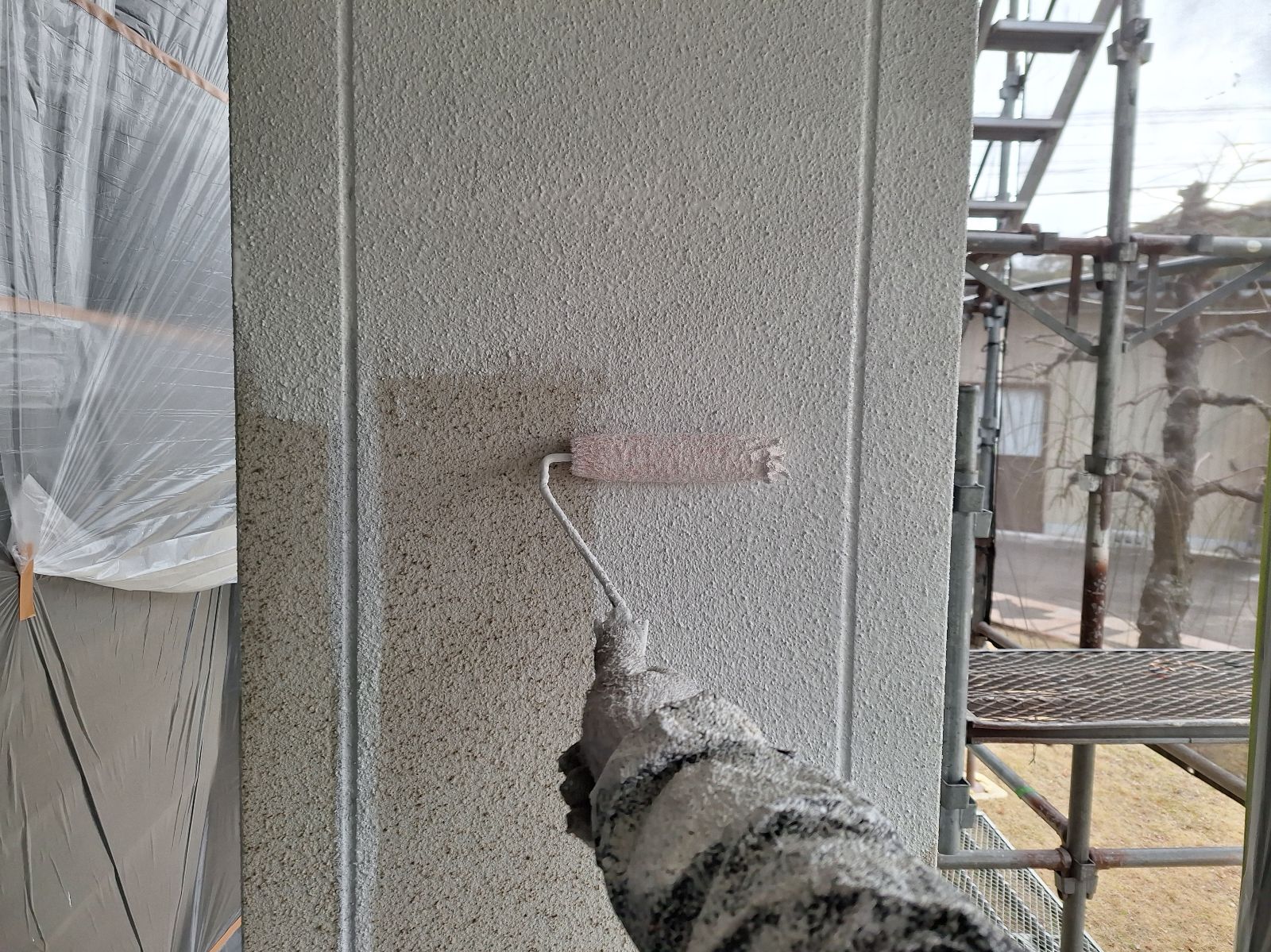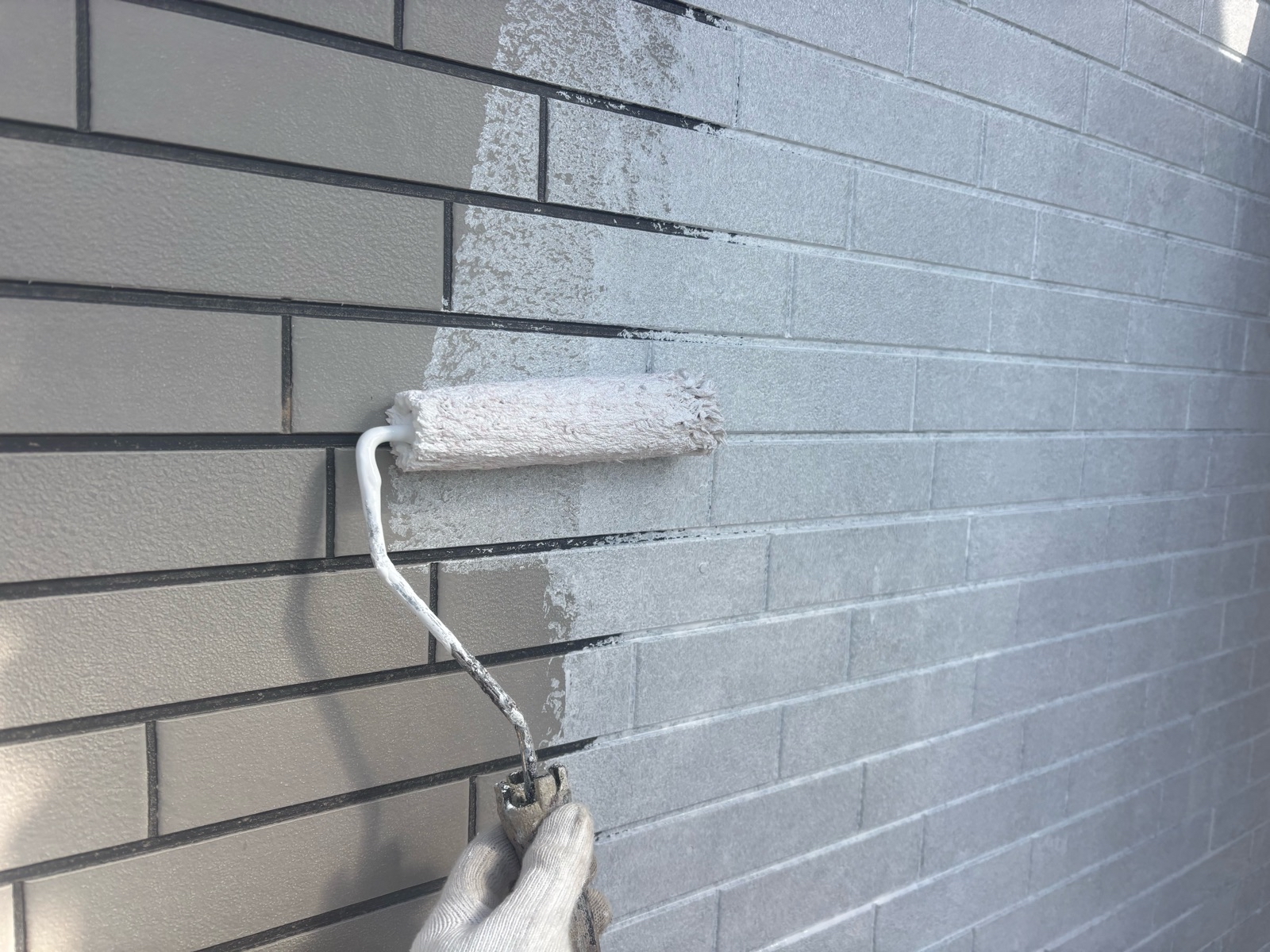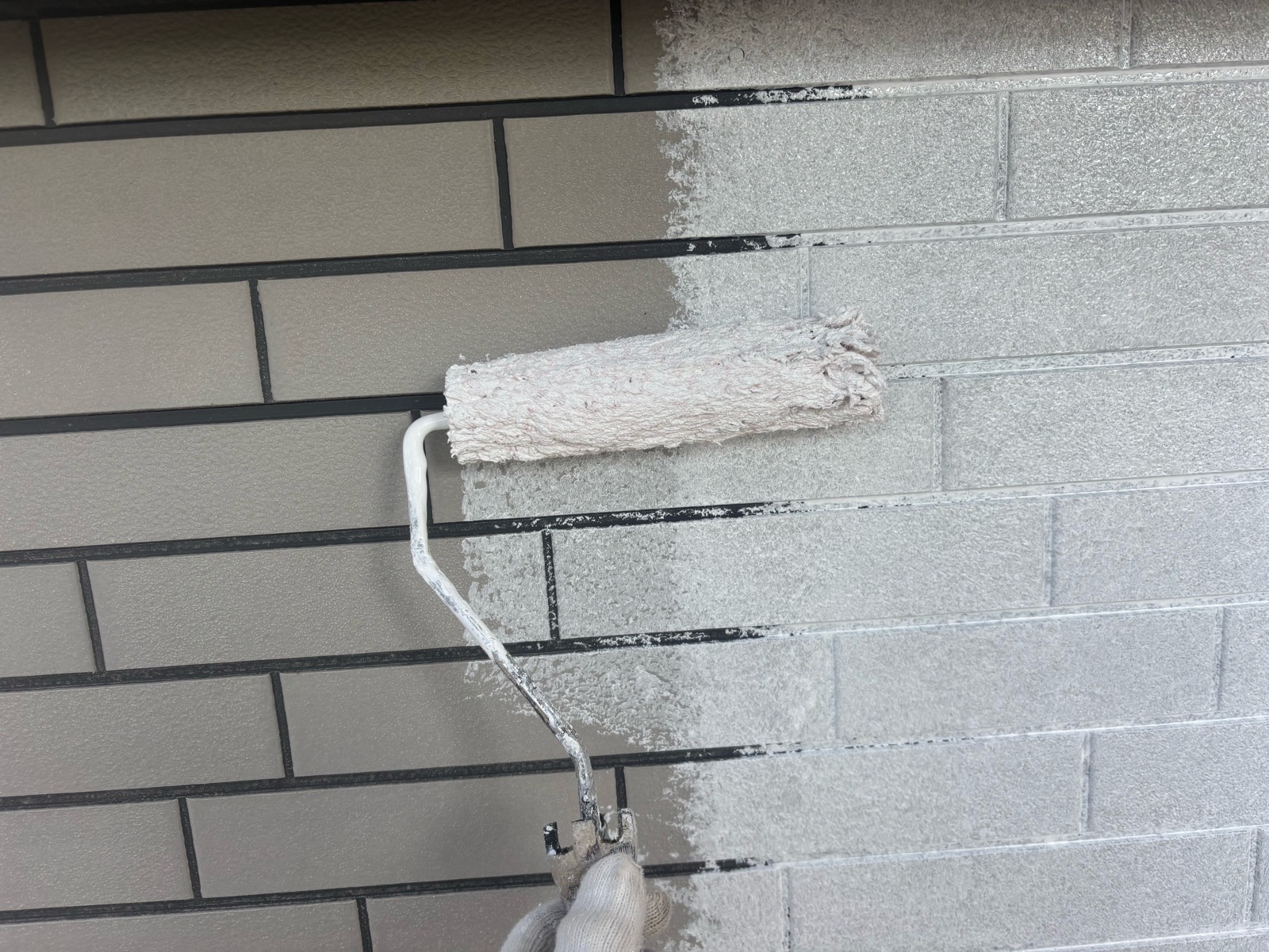 外壁塗装作業 上塗り1回目の様子です(3/3施工)
