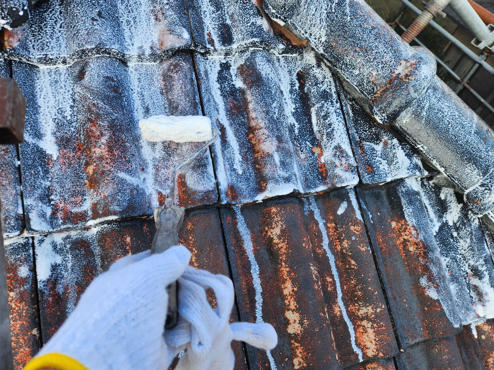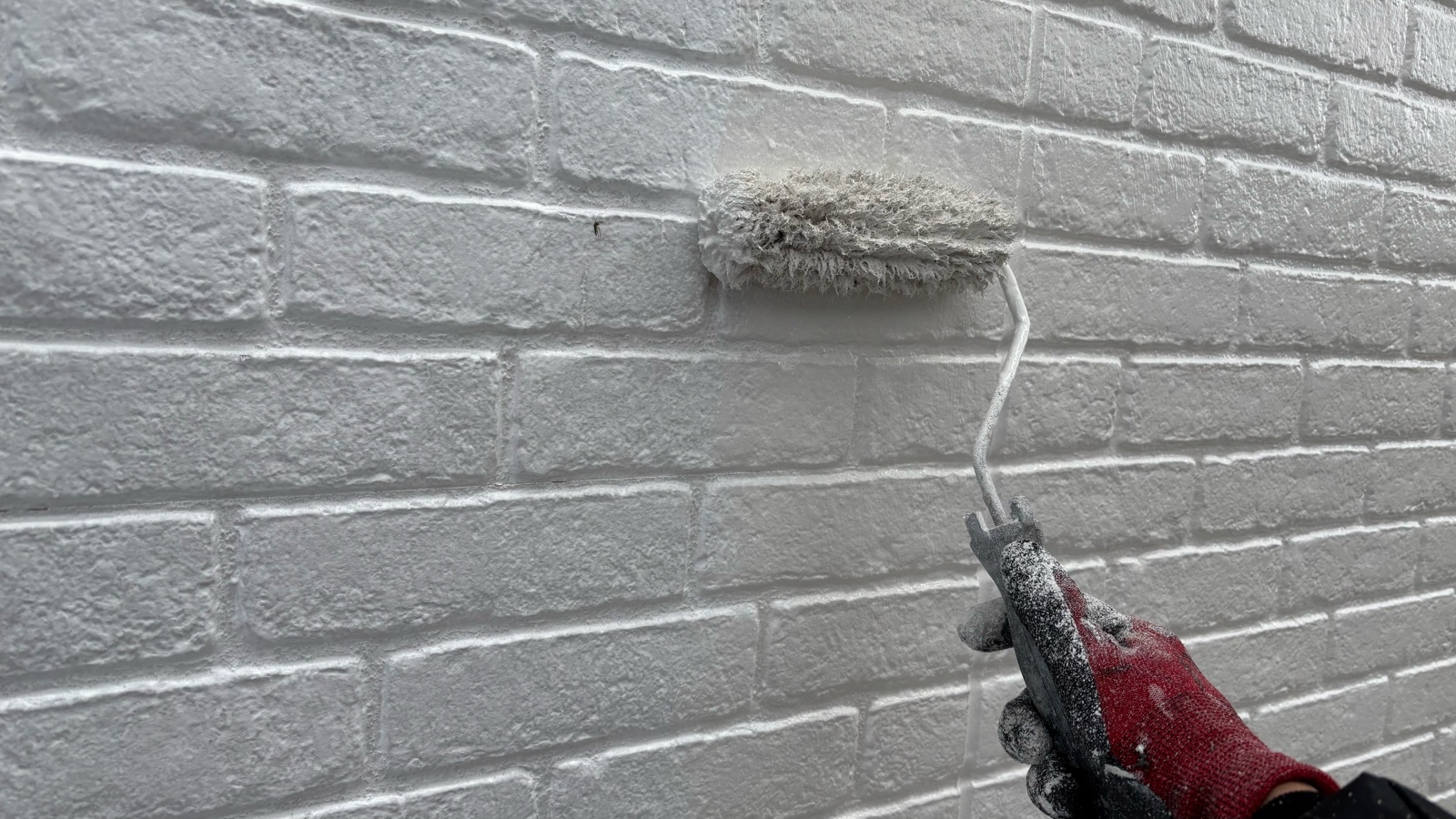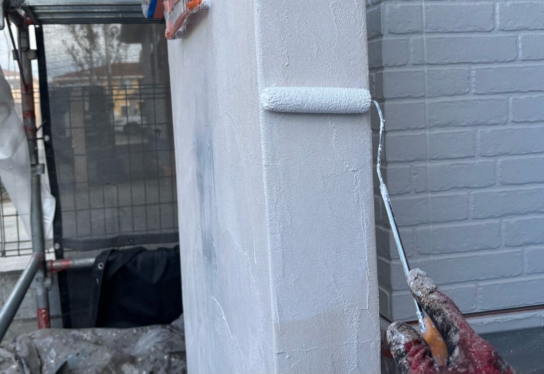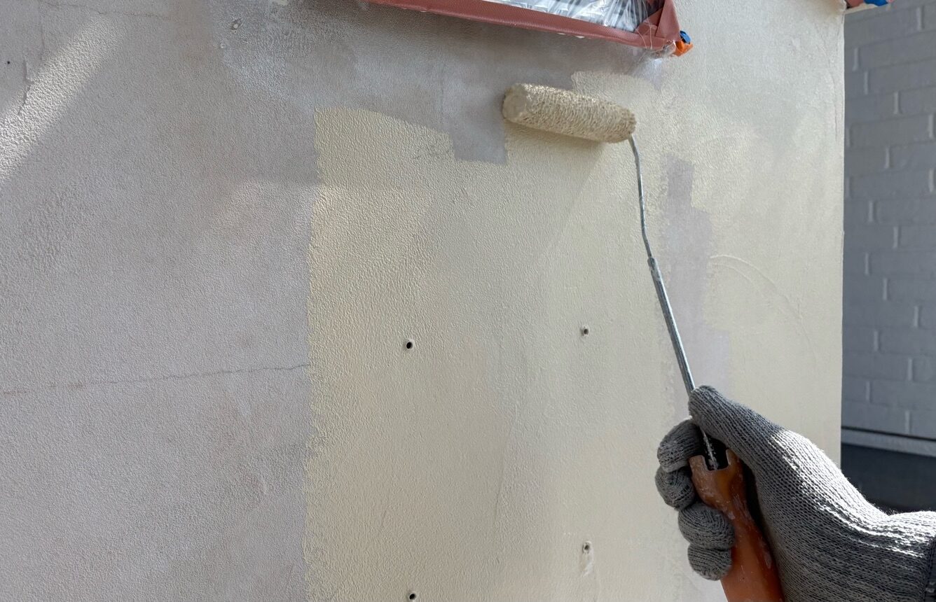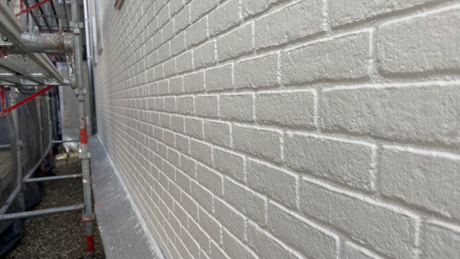 外壁塗装作業 上塗り1回目の様子です(3/3施工)