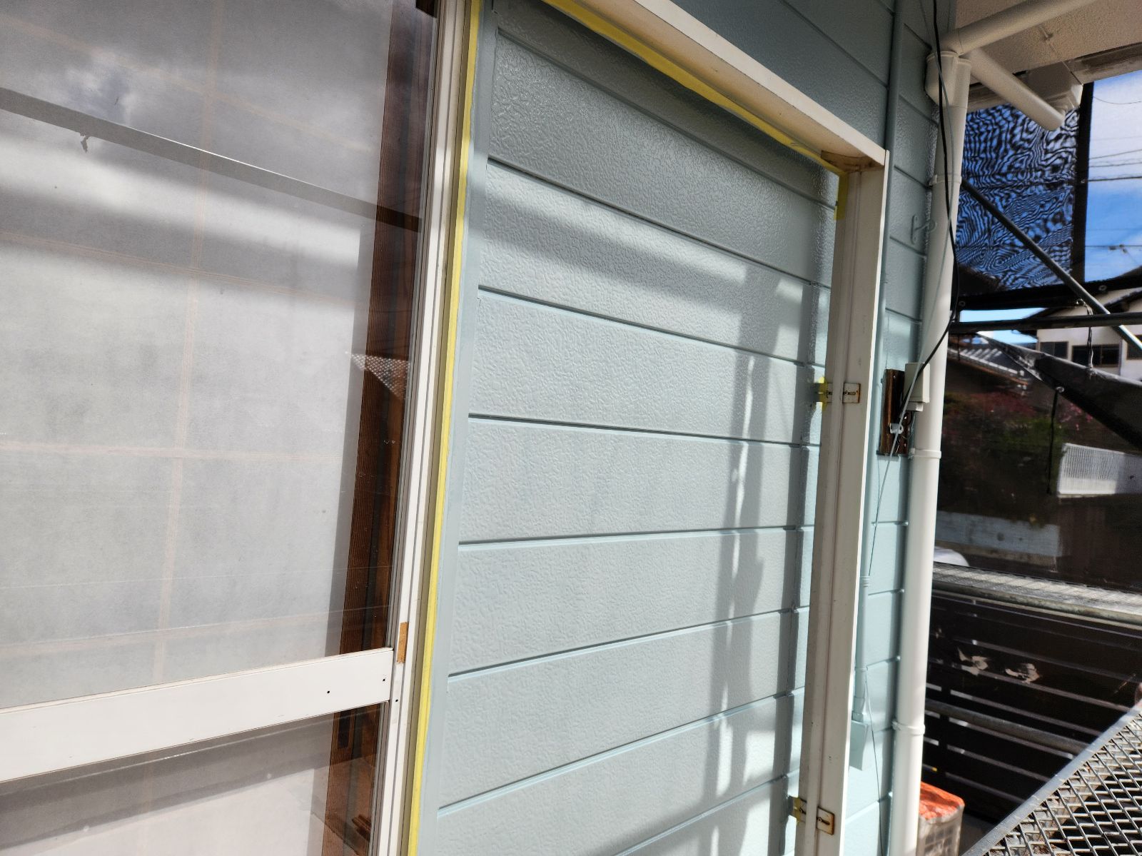 外壁塗装作業 上塗り2回目の様子です(3/4施工)