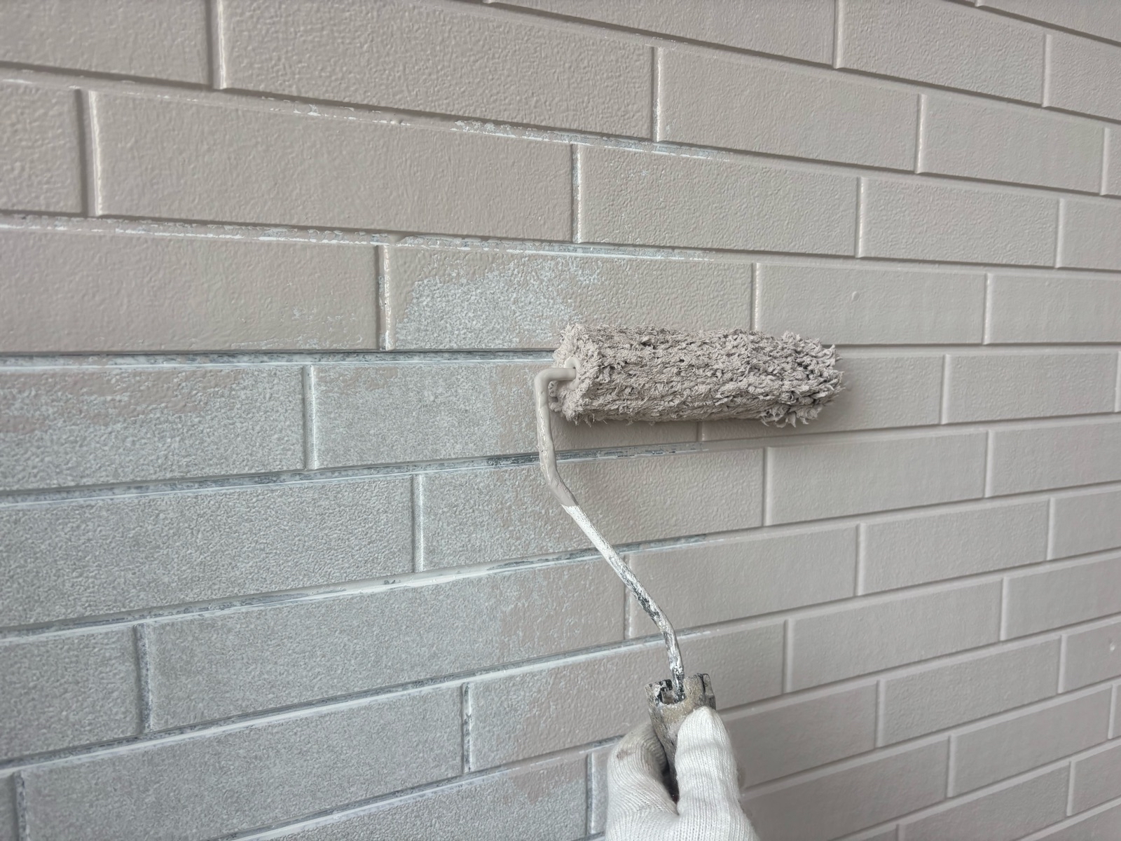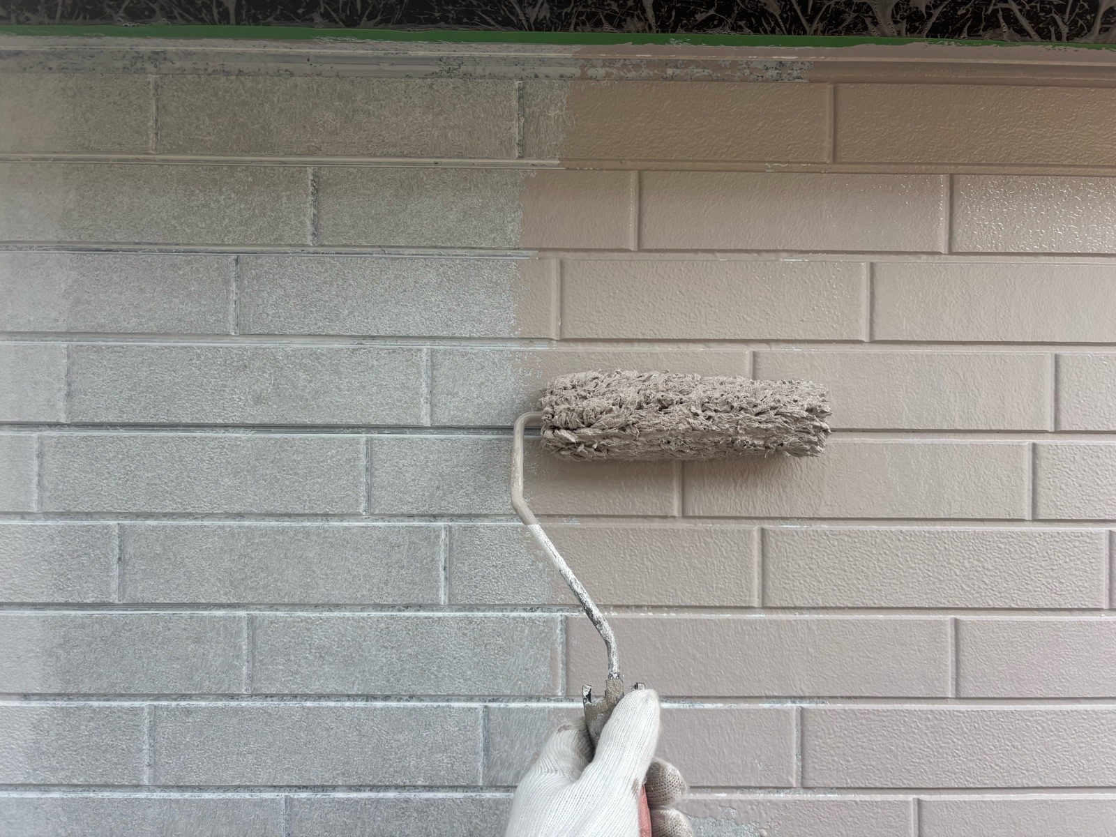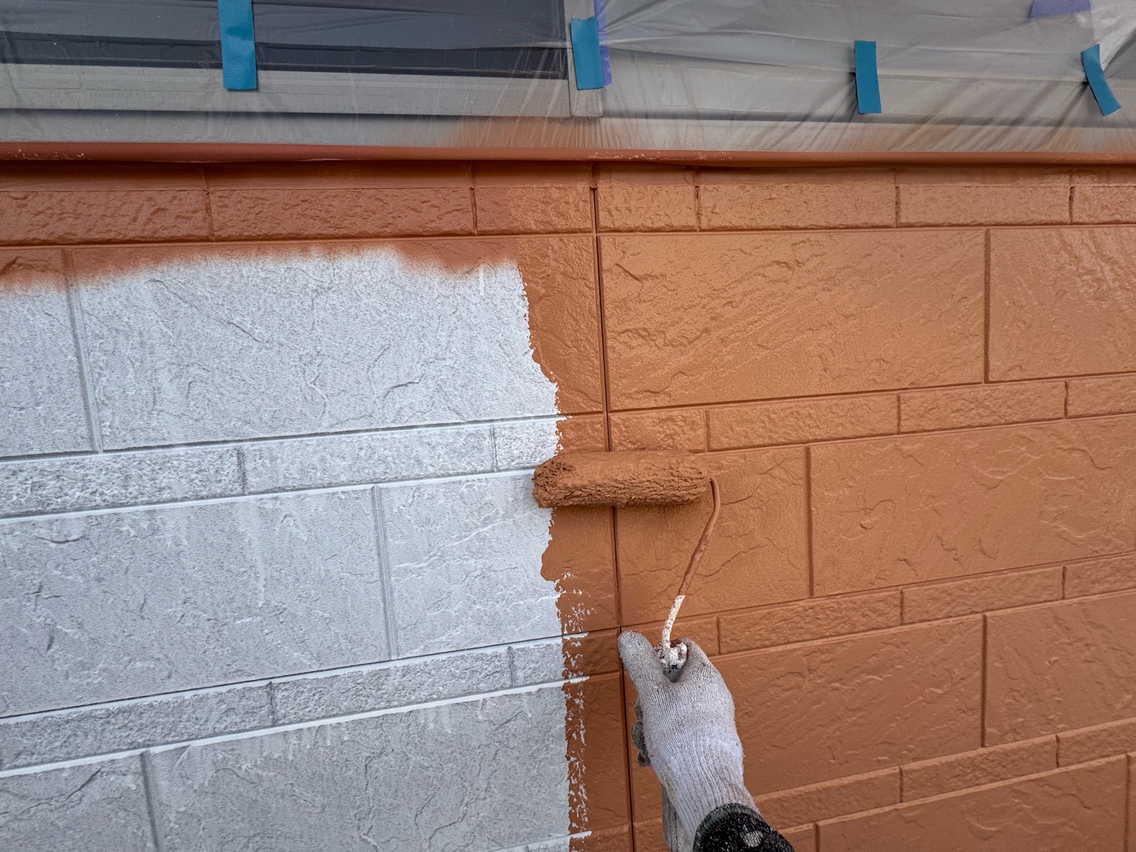 外壁塗装作業 上塗り1回目・2回目の様子です