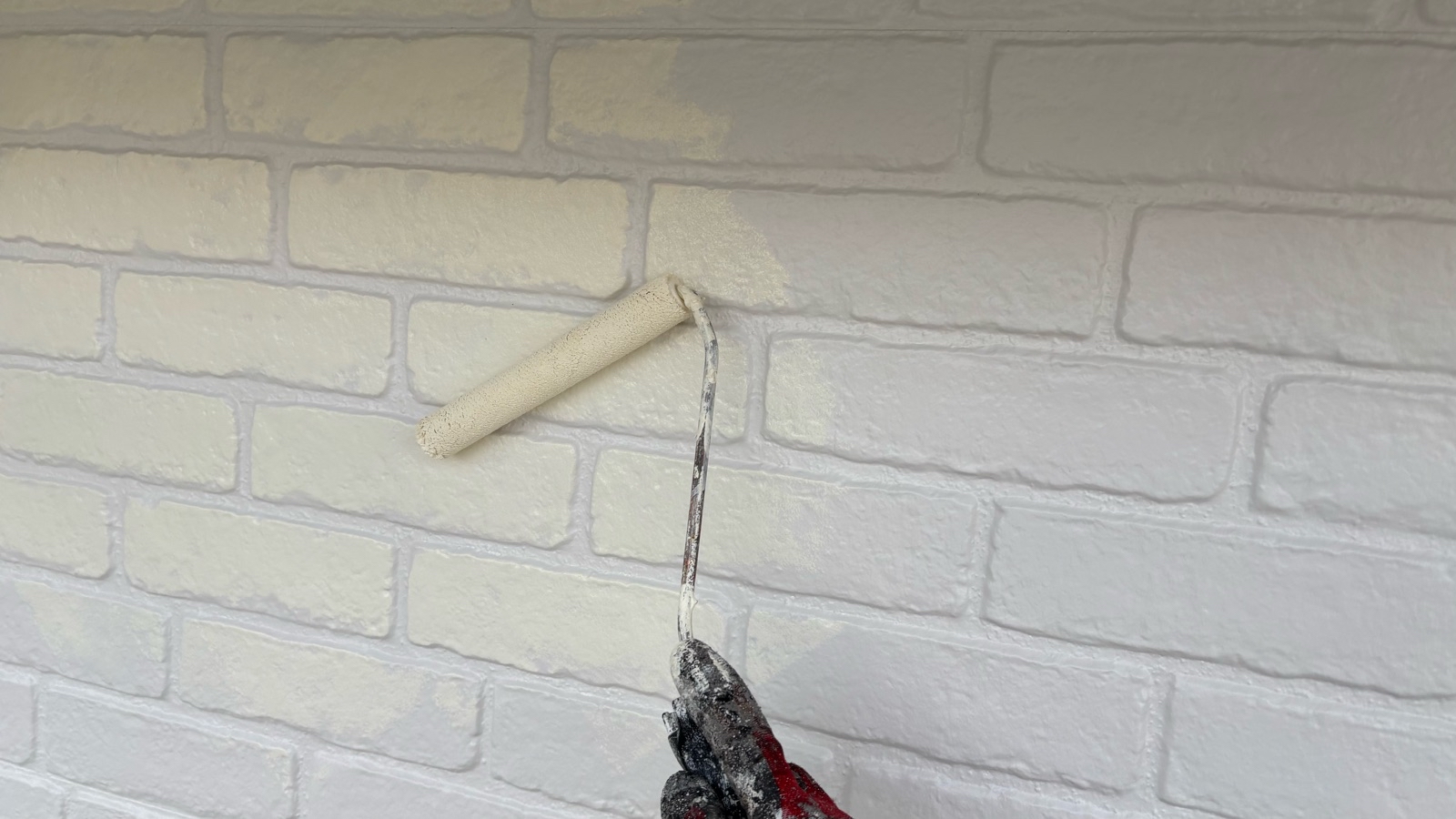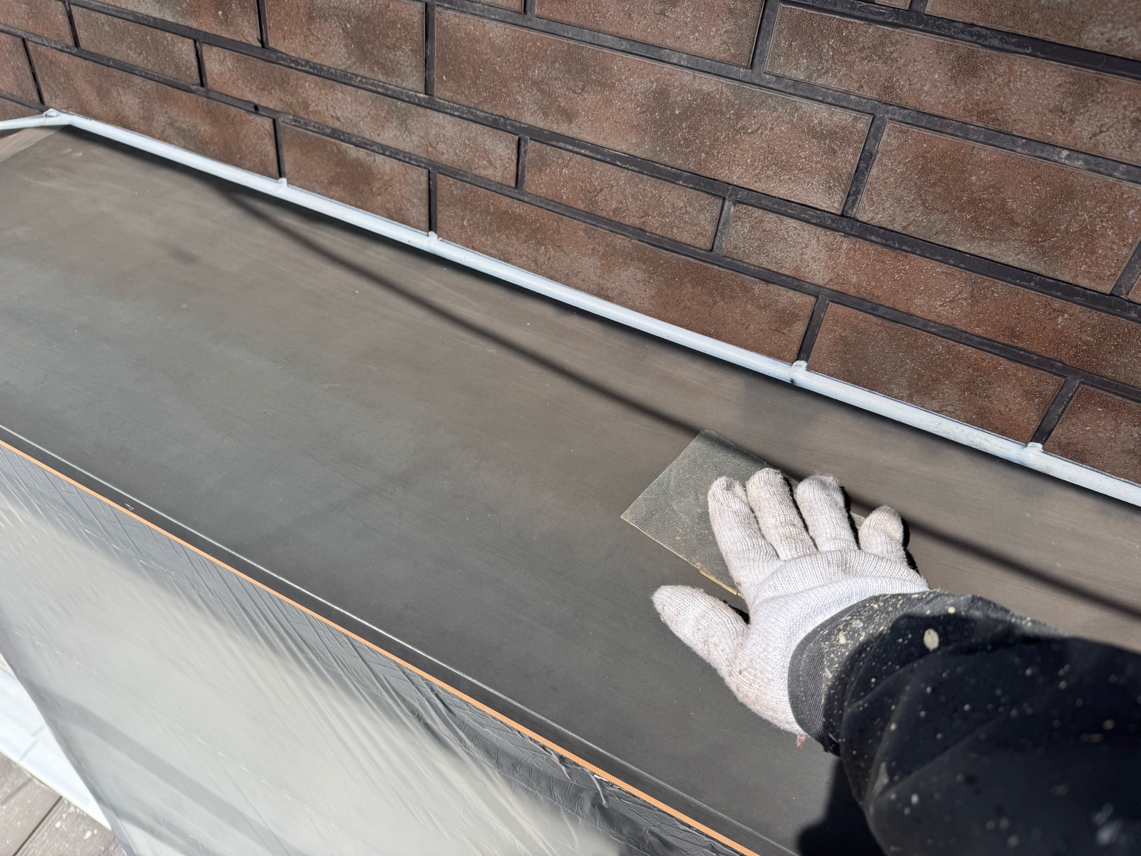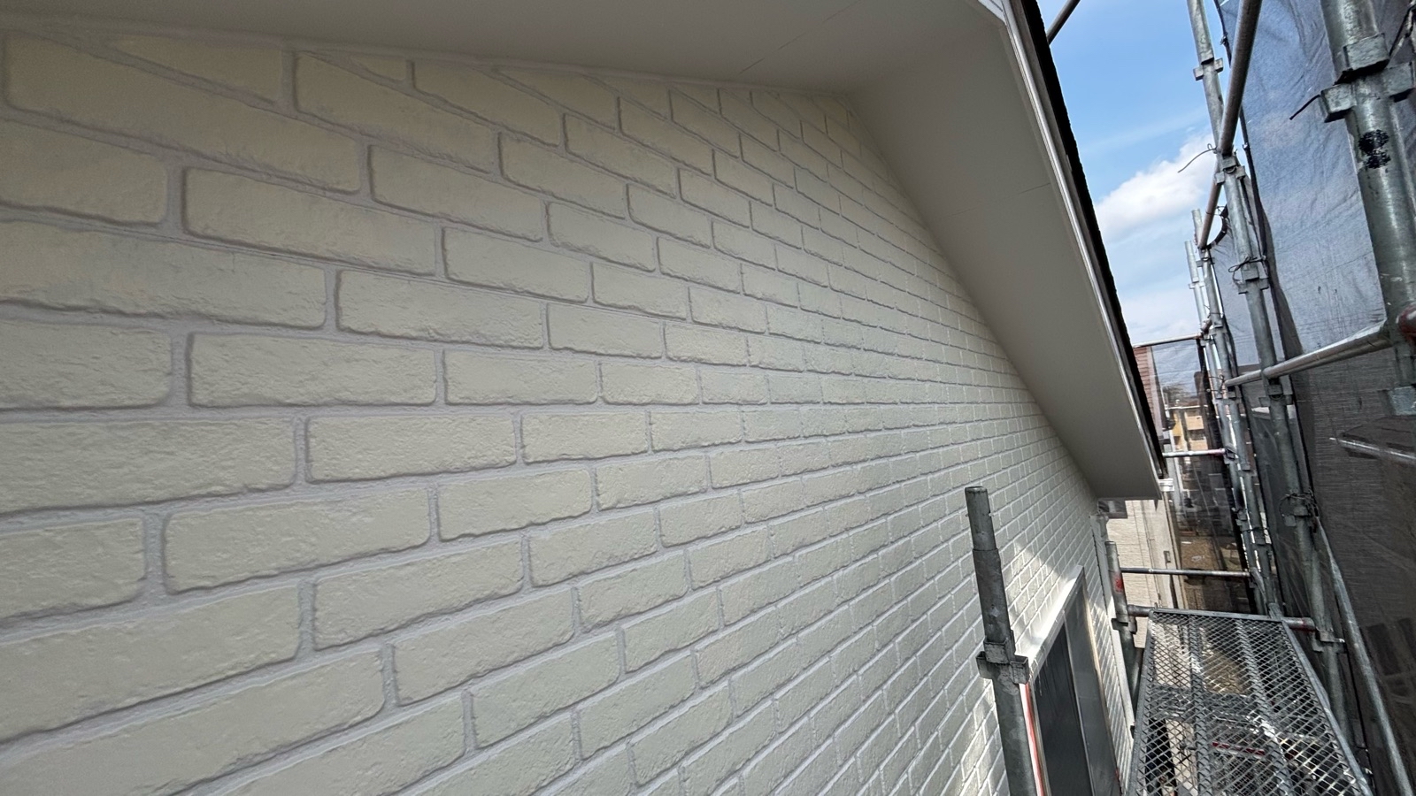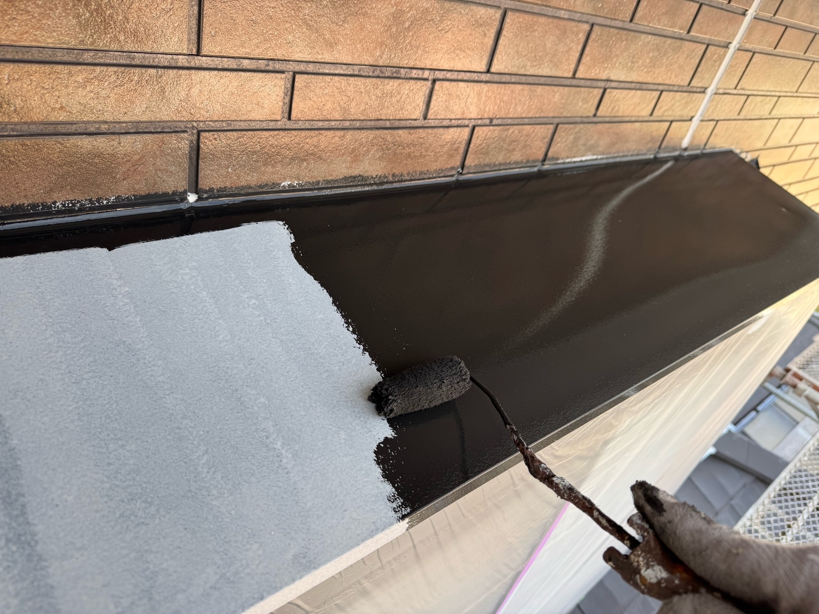 外壁塗装作業 上塗り1回目・2回目の様子です