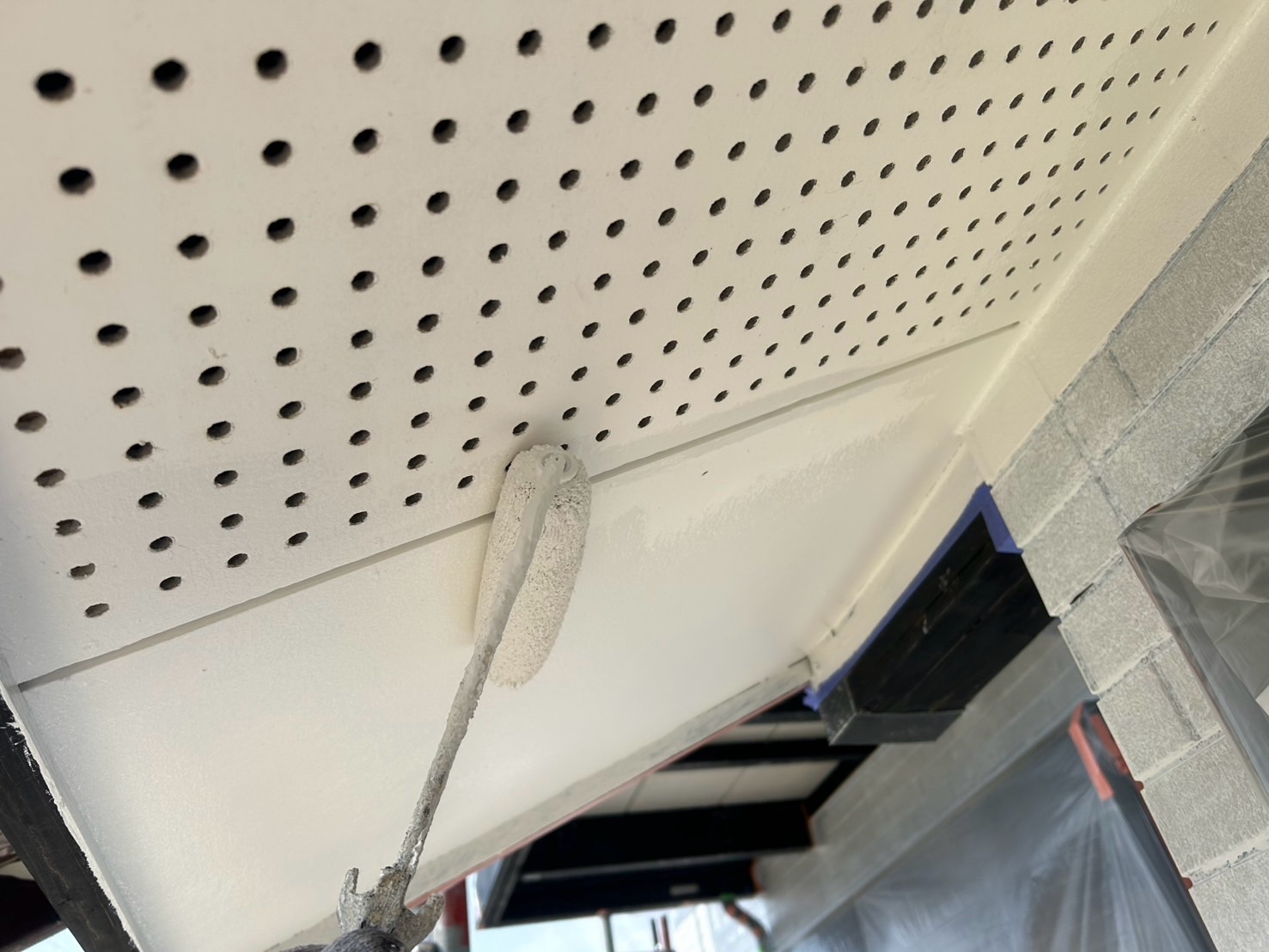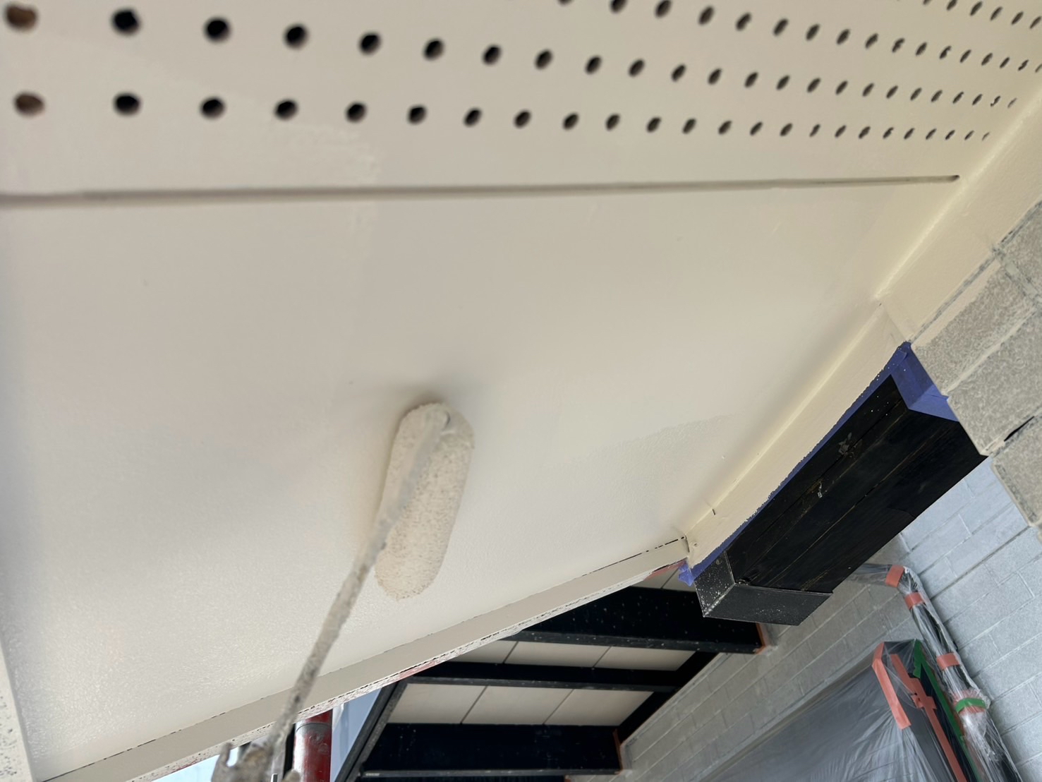 国東市K様邸 軒天塗装/外壁上塗り作業