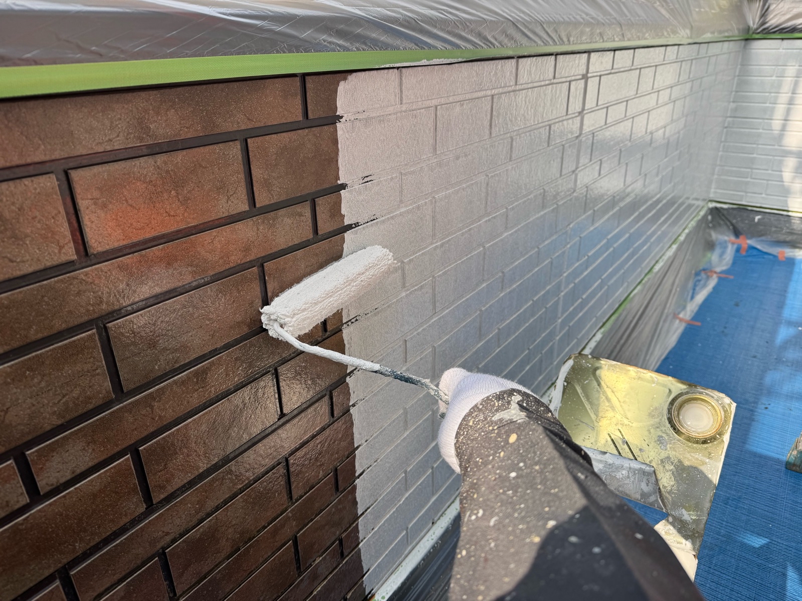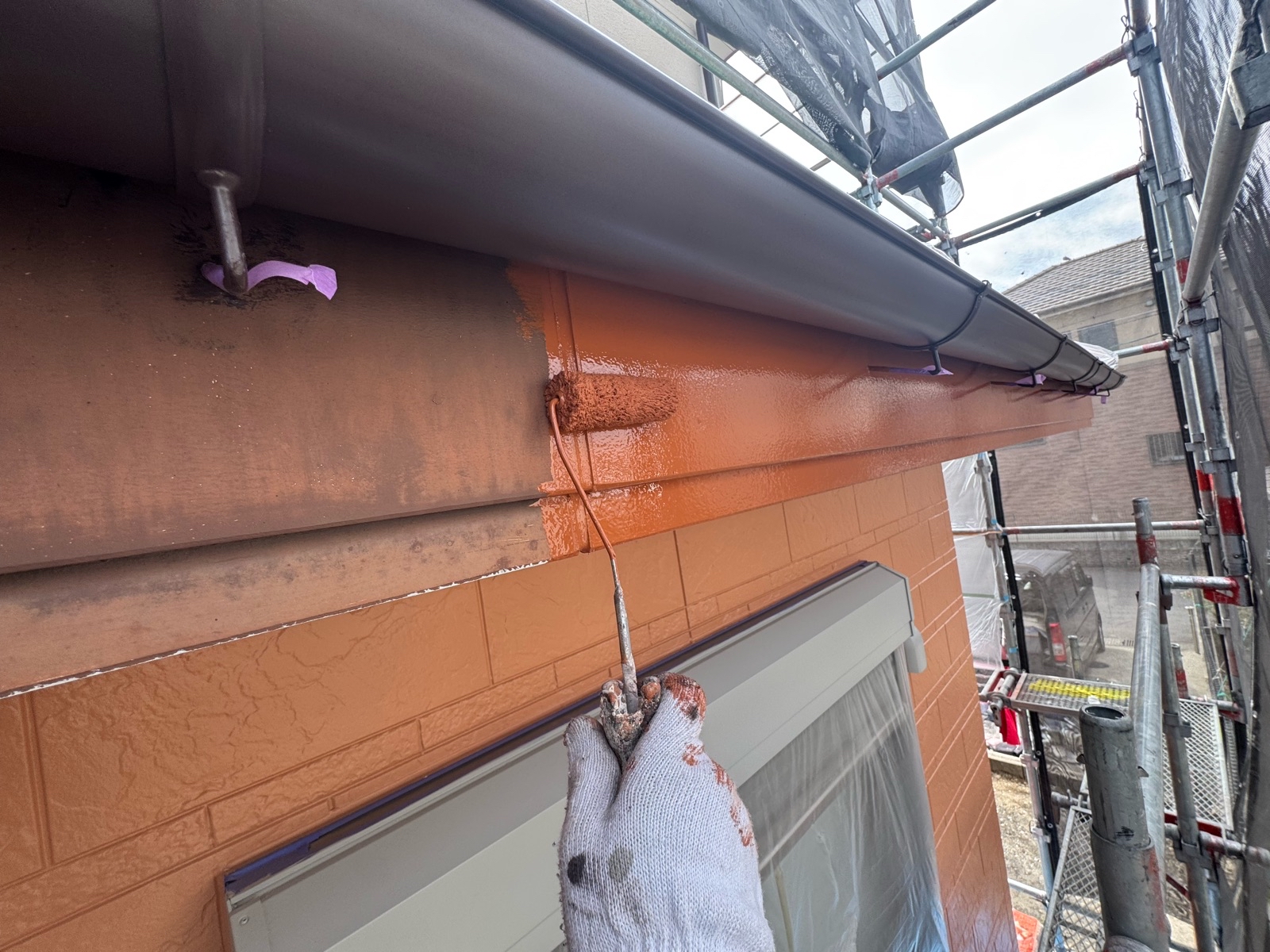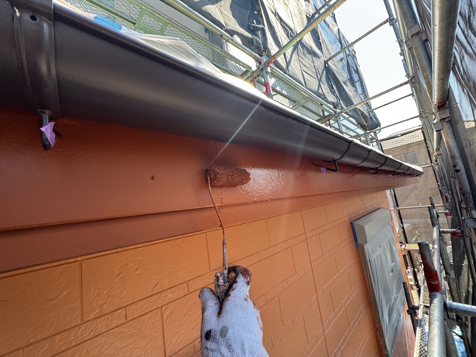 外壁塗装作業 下塗りの様子です