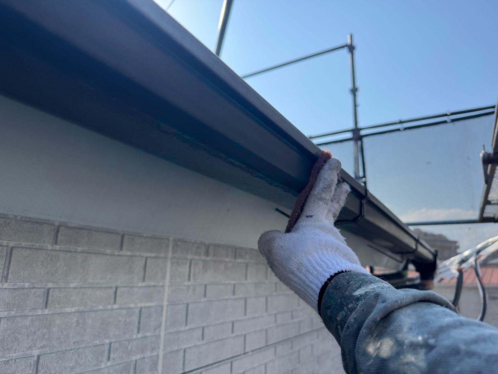 鼻隠し・破風板塗装 1回目の様子です