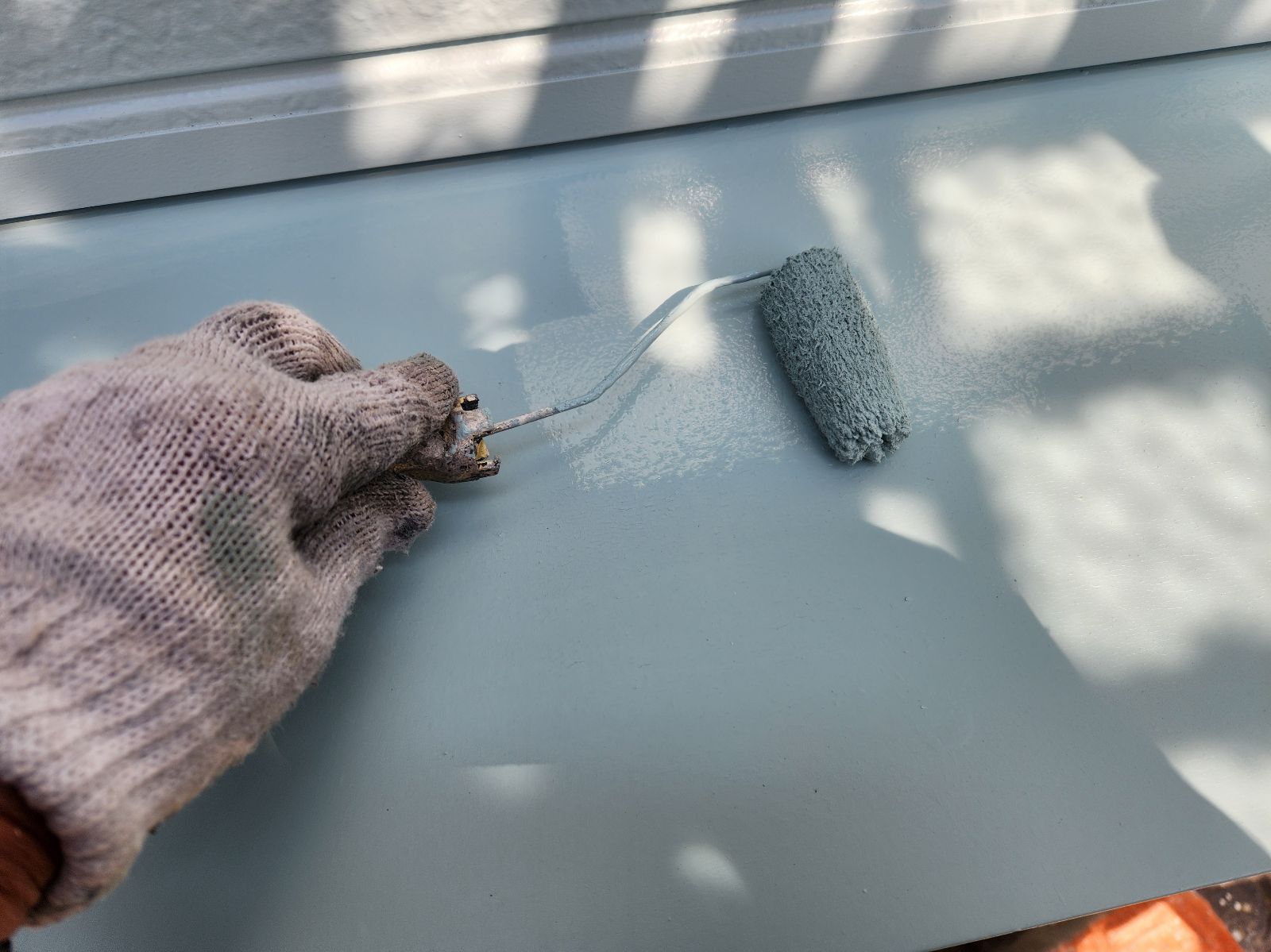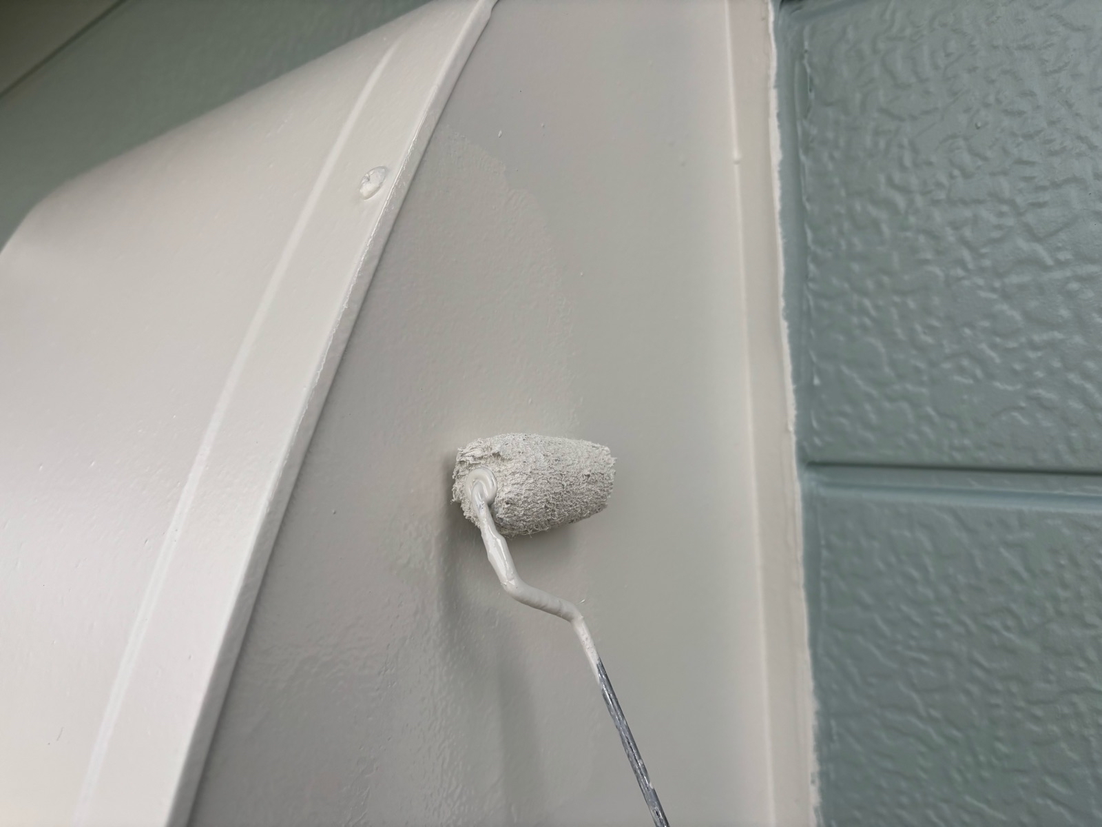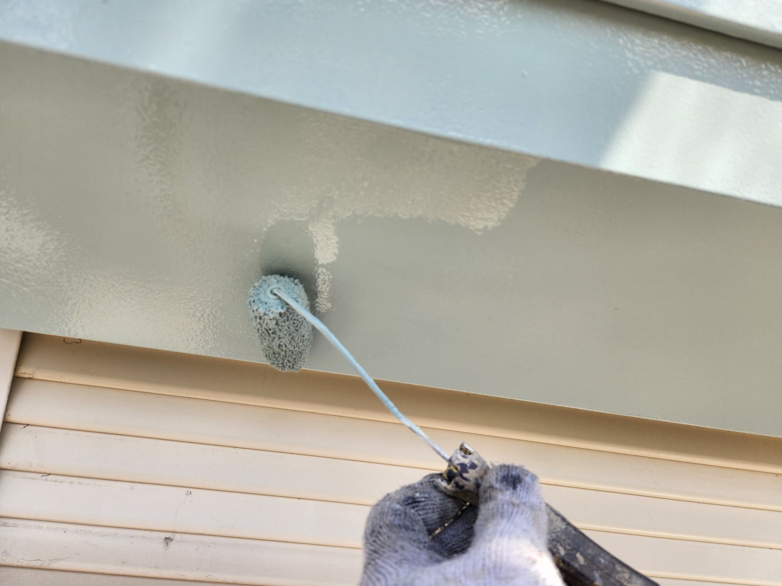 シャッターBOX塗装、小庇塗装 2回目の様子です