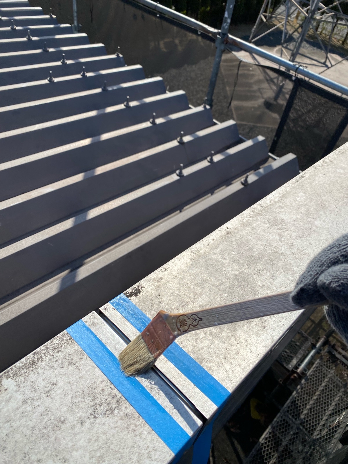 ケレン作業、錆止め塗装の様子です