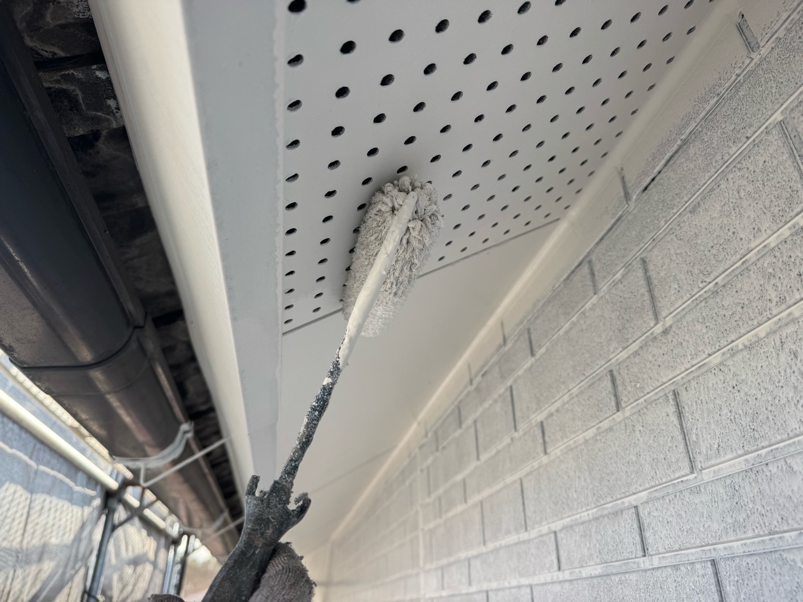 軒天塗装 2回目の様子です