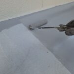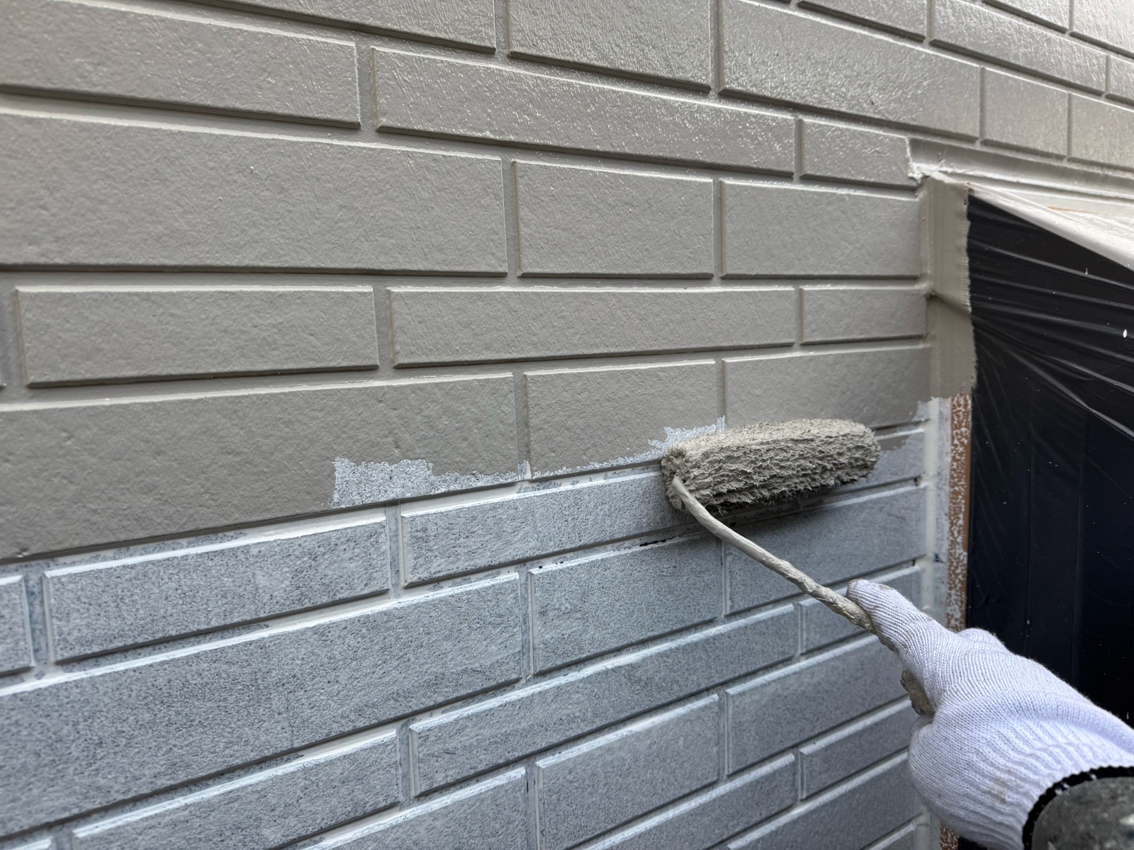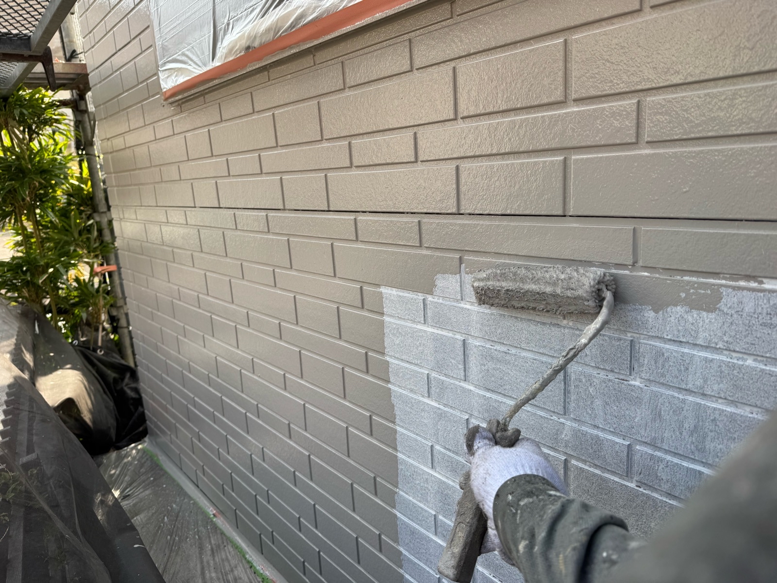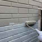 外壁塗装作業 上塗り1回目の様子です