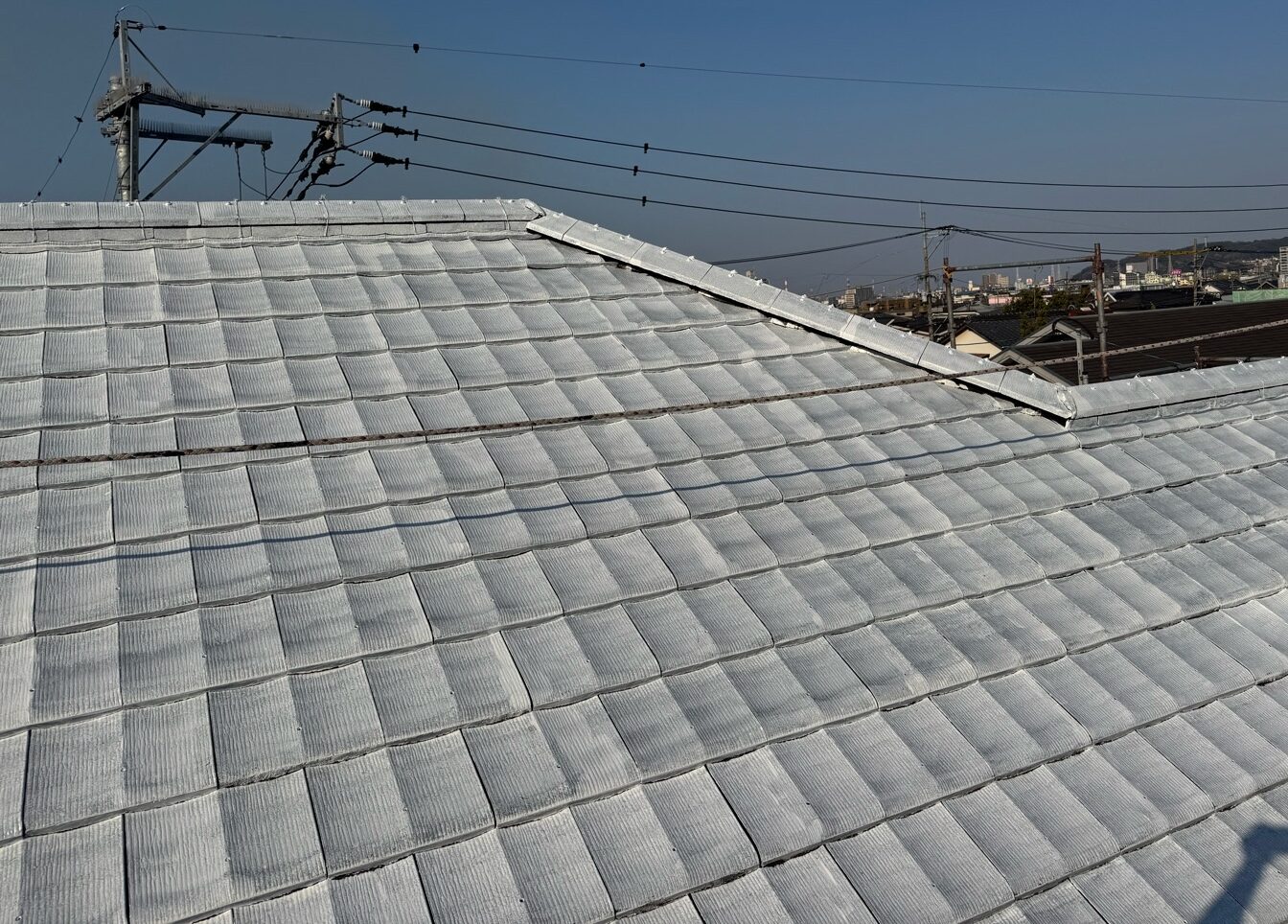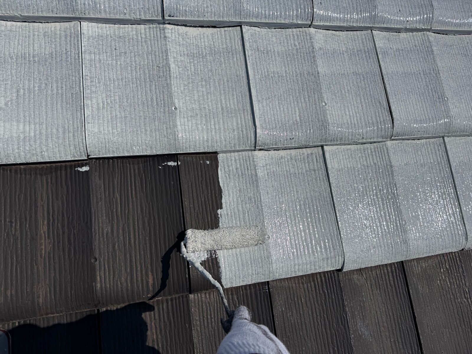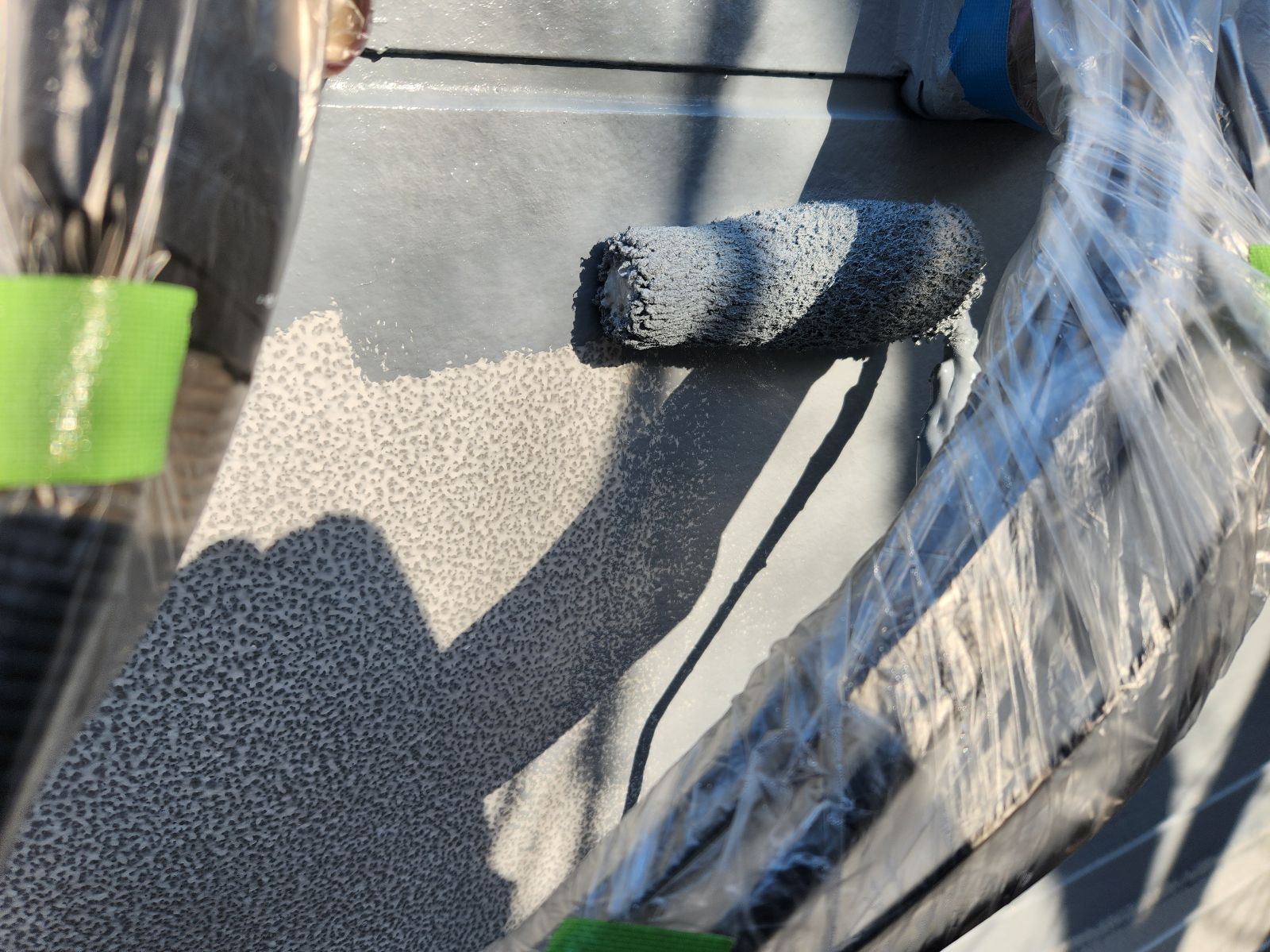 屋根塗装作業 下塗りの様子です