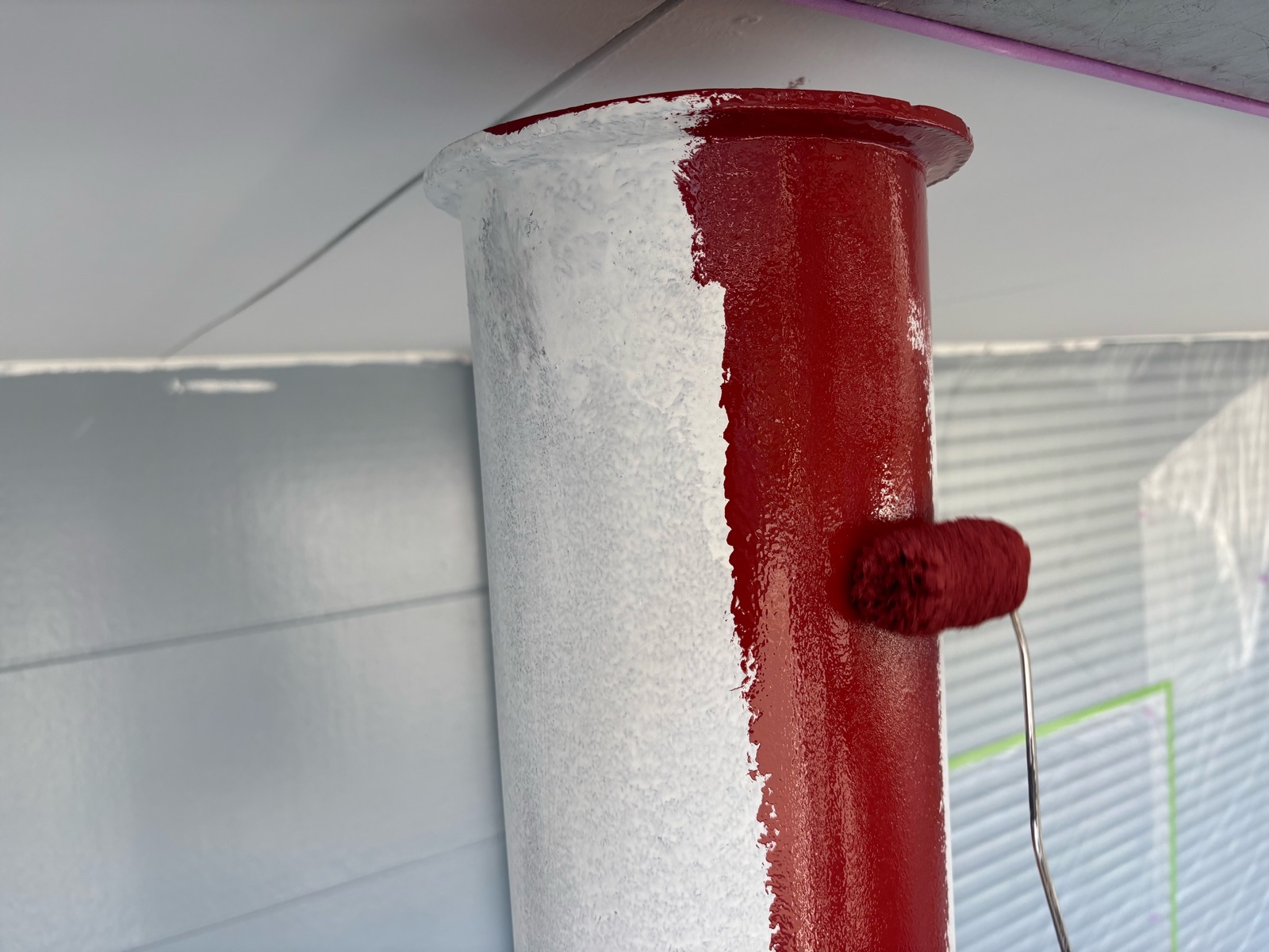 鉄柱塗装 1回目の様子です