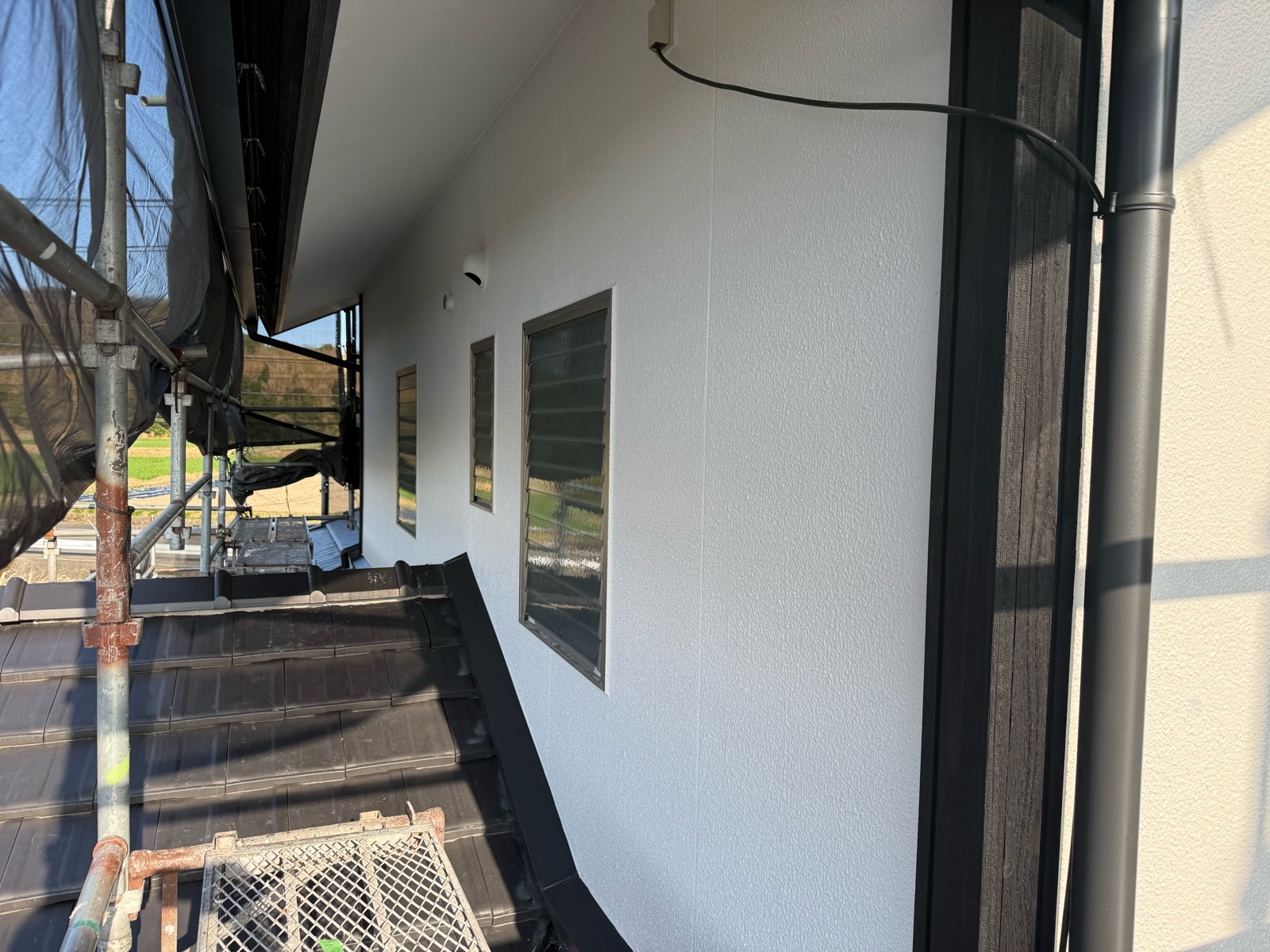 外壁塗装作業(北面) 上塗り2回目の様子です