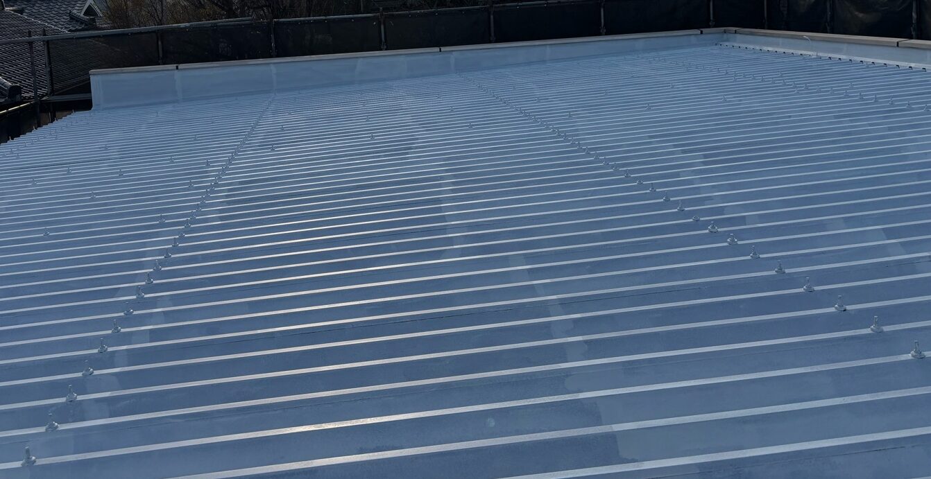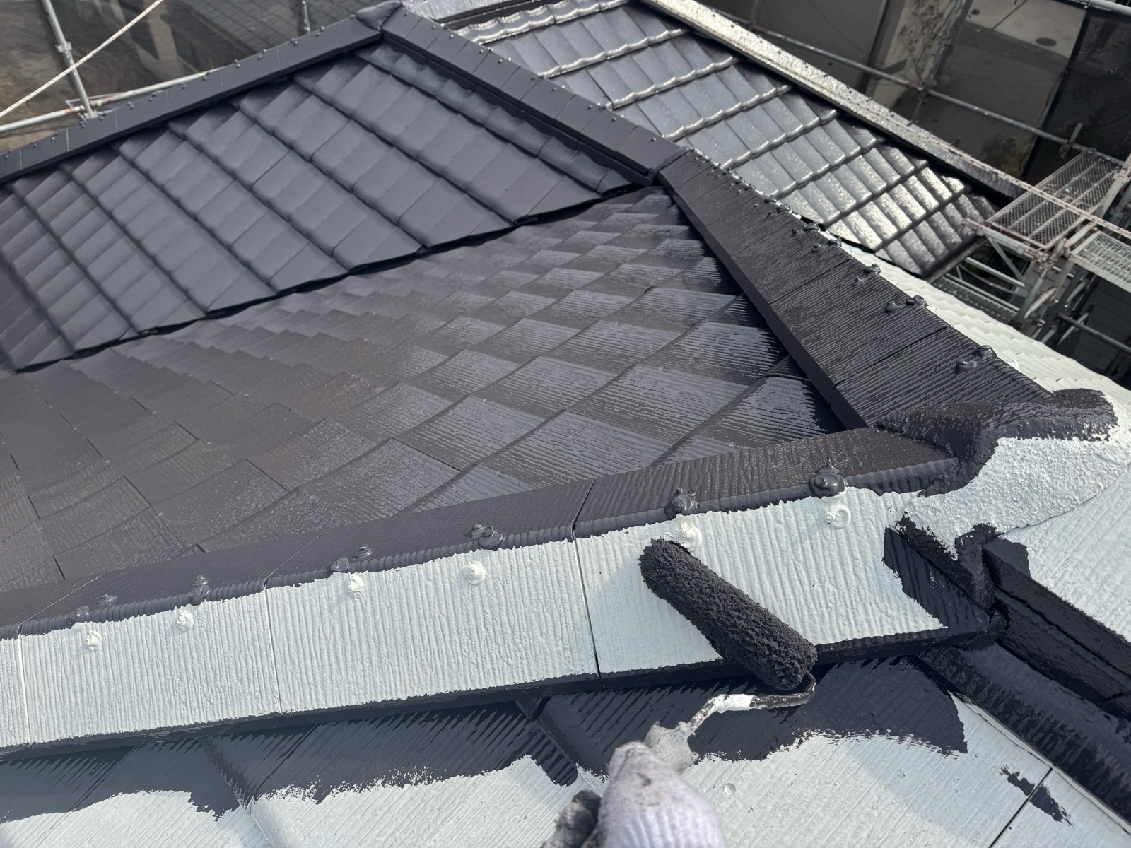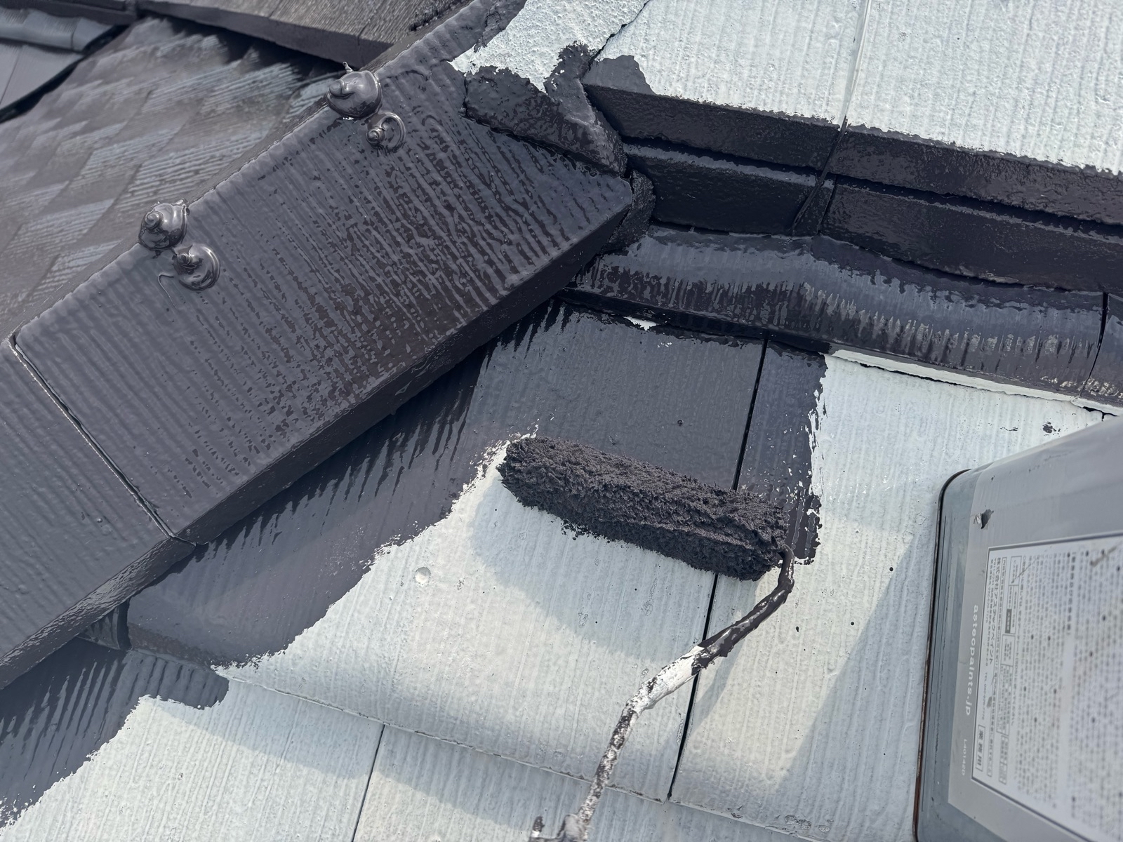 屋根塗装作業 上塗り1回目の様子です