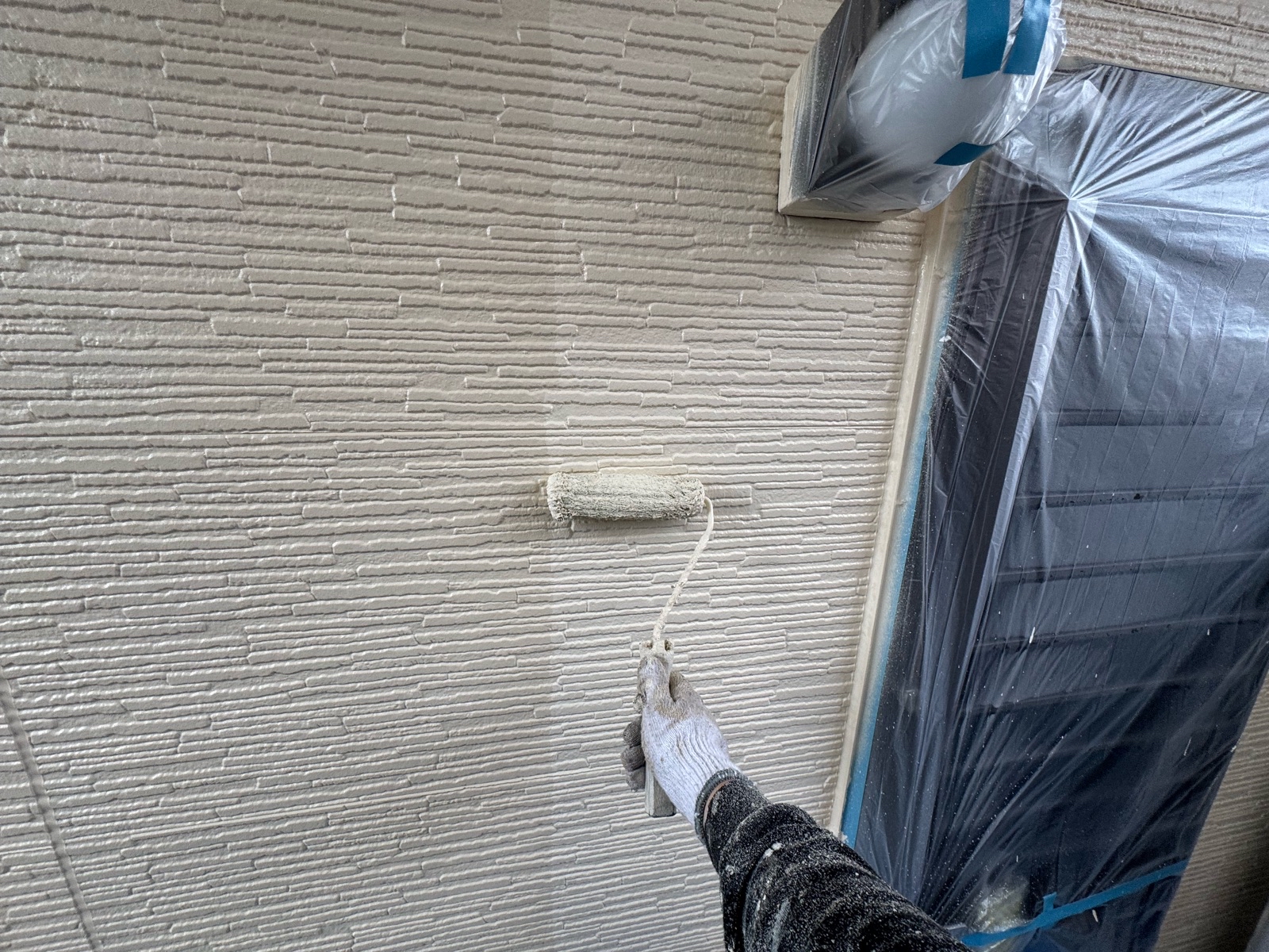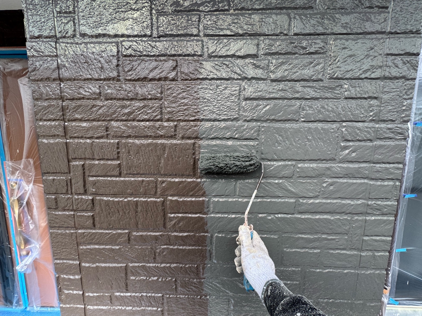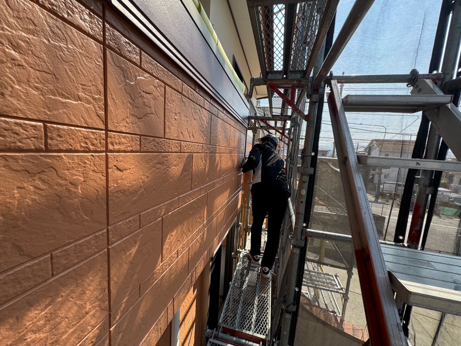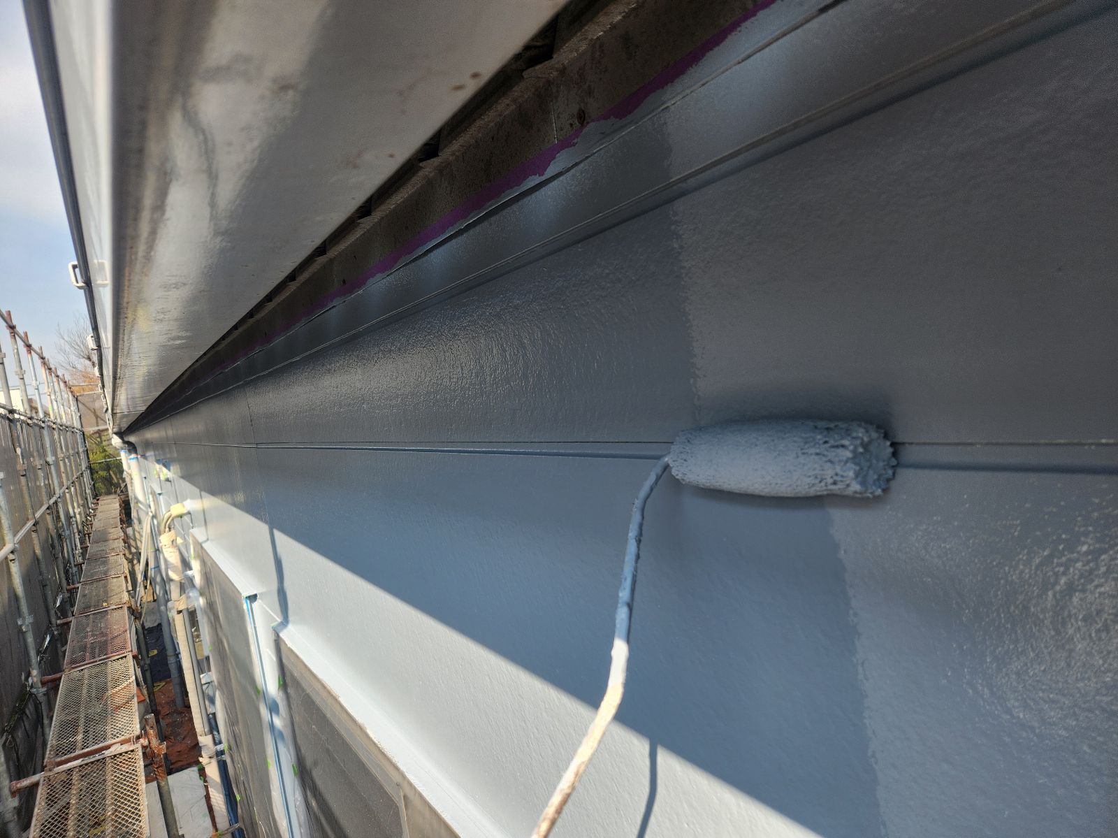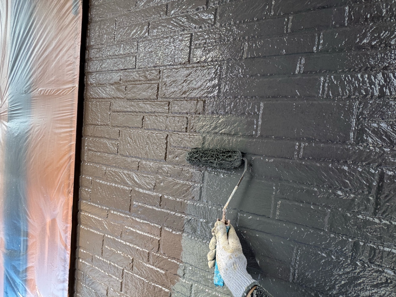 外壁塗装作業 上塗り2回目の様子です