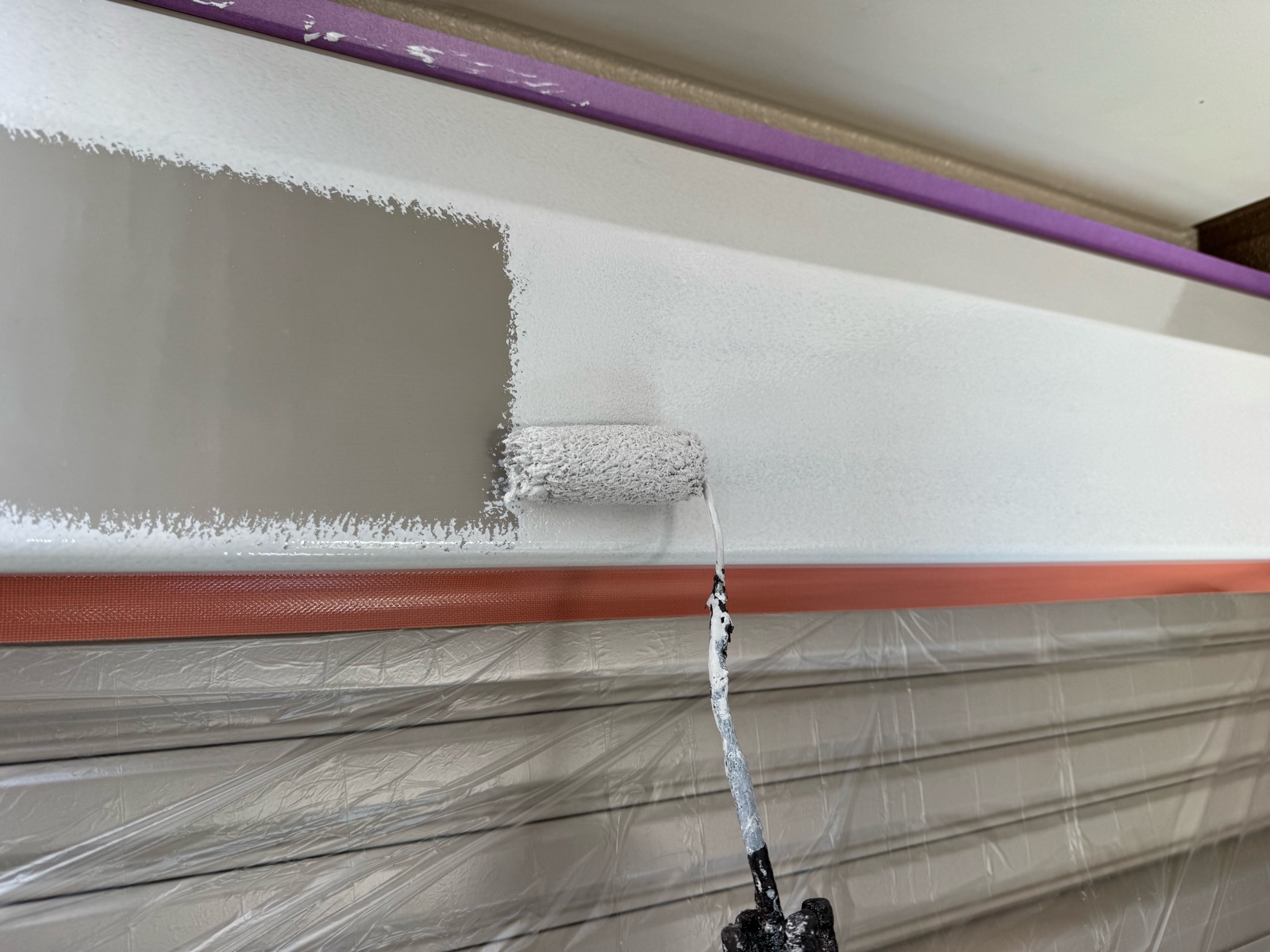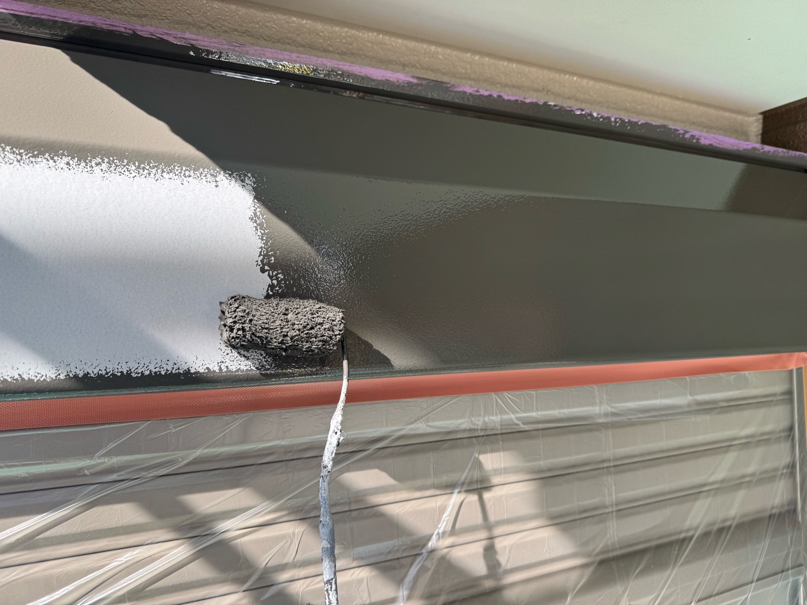 シャッターBOX塗装、雨切り板金塗装 1回目の様子です