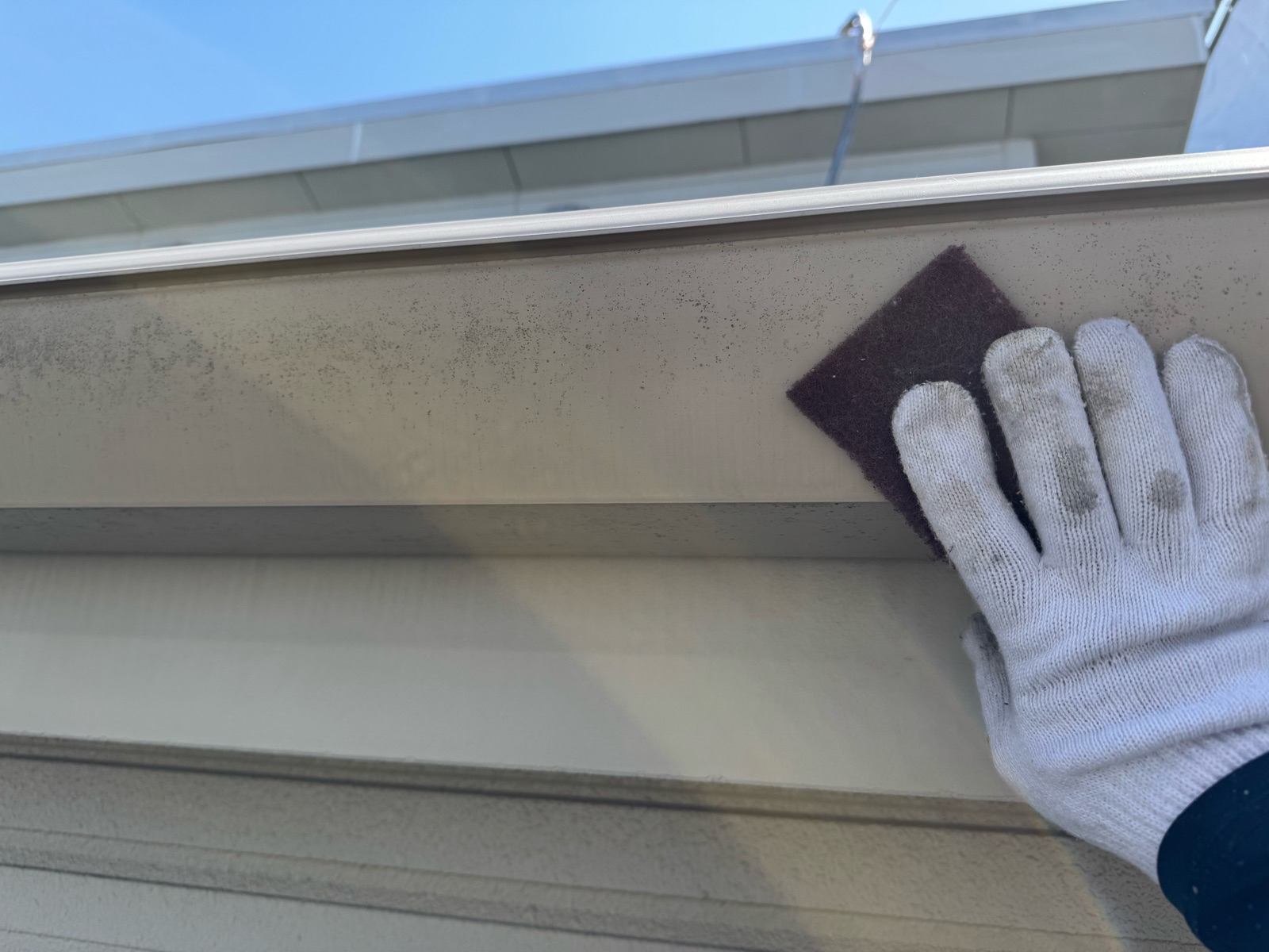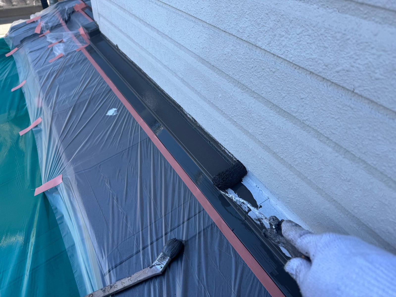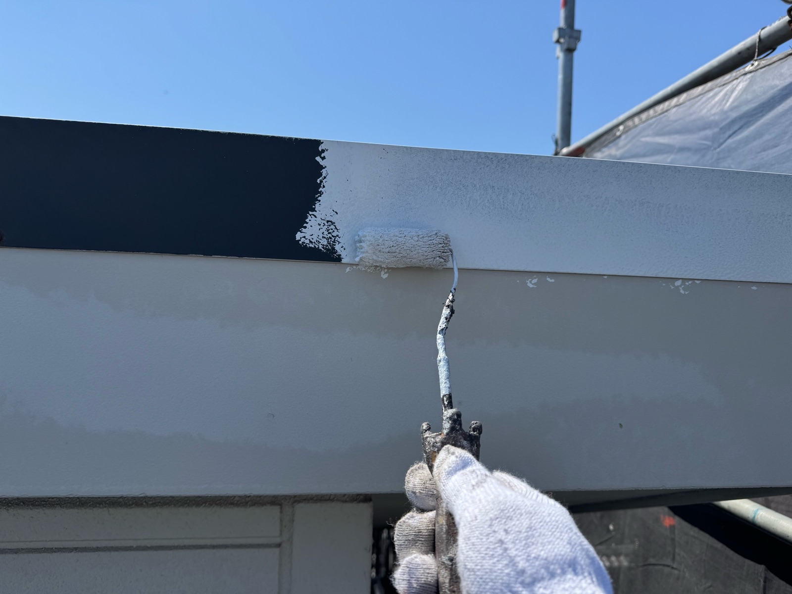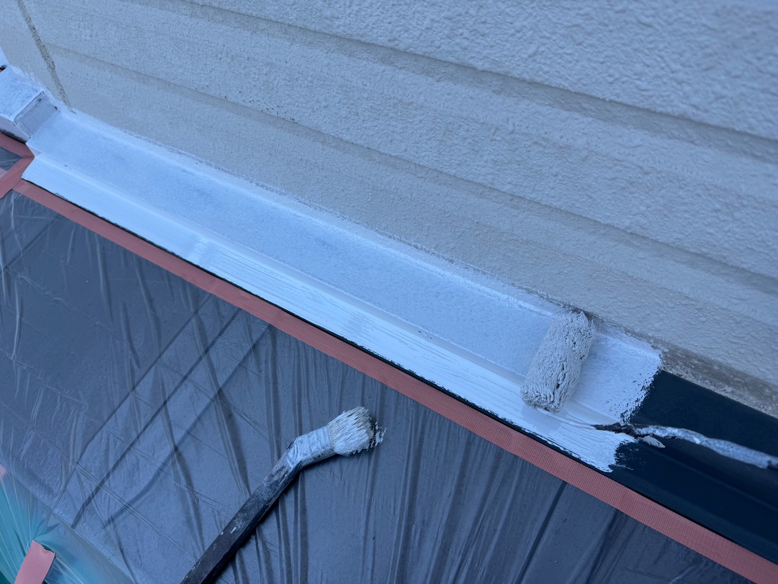 雨樋塗装、水切り板金塗装 1回目の様子です